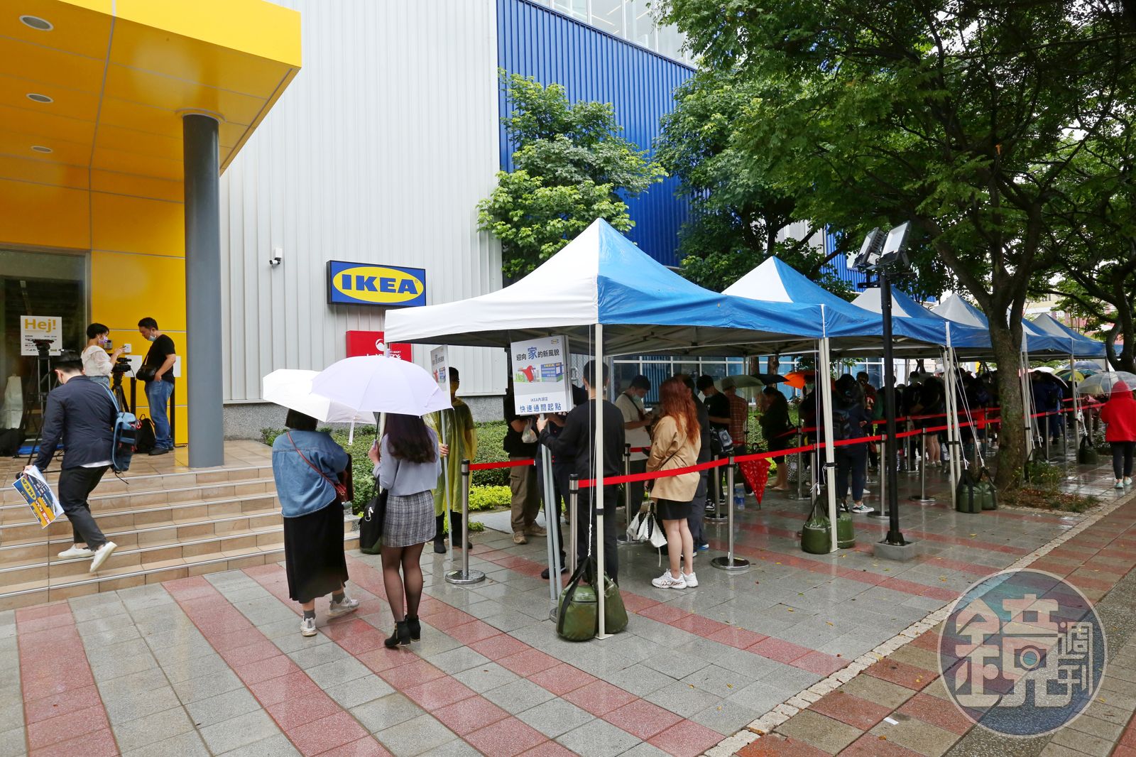 IKEA內湖店開幕雖碰上下雨天,依然吸引大批民眾前往朝聖。IKEA內湖新店全館占地逾6,200坪、同時最高可容納9,000人,IKEA北亞區市場行銷部企業傳播暨內部溝通經理吳語涵受訪強調,新店占地遼闊是敦北店的2倍,能容納更多大台北地區的消費者。