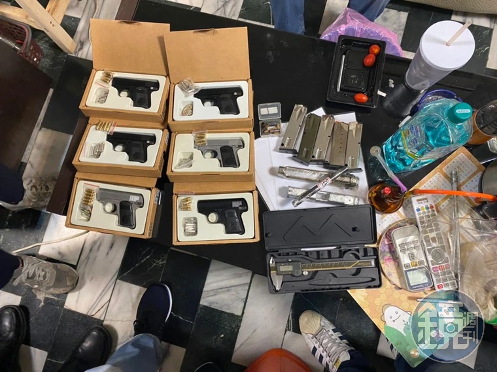 鄭男看到大批員警也涼了半截,乖乖舉高雙手大喊一定會配合,查緝員警在屋內發現大批改槍機具,還有6把模擬槍、空彈匣5個、滑套2支、槍管1支及毒品吸食器等物品,懷疑他根本把家裡當改槍場,據瞭解,過去曾擔任過車床工人的鄭男,疑似利用車床加工的技術,在家從事改槍販售,警方也將他依槍砲條例及毒品等罪移送地檢署偵辦,並要擴大追查他改槍販售管道及槍毒來源。
