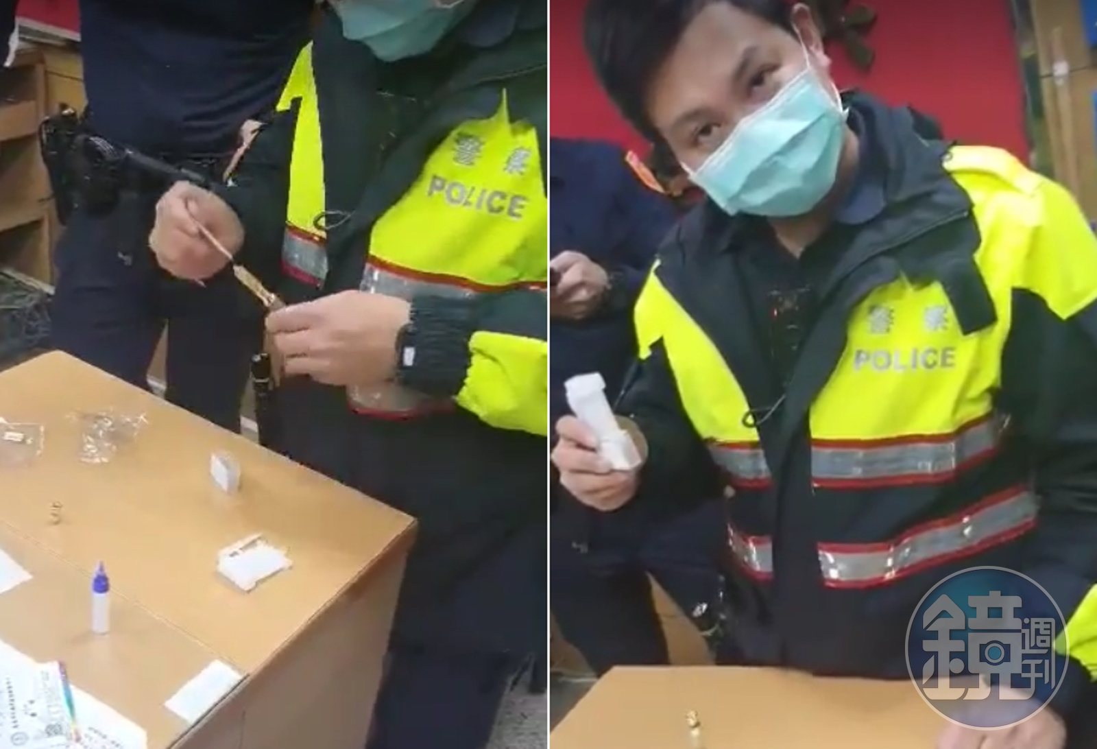 被帶回派出所後,左撇子持續錄影自保,他也提供當時的錄影畫面,從影片中可以看到左撇子向員警多次強調,他的電子菸與菸油均是合法購買,其成分為純CBD(大麻二酚),而員警也承認說大麻二酚是合法藥品,但卻表示其中THC的含量必須在千分之一以內(事實上此處指的應該是10ppm),否則就會被列為「二級毒品大麻」,因此要現場檢驗。