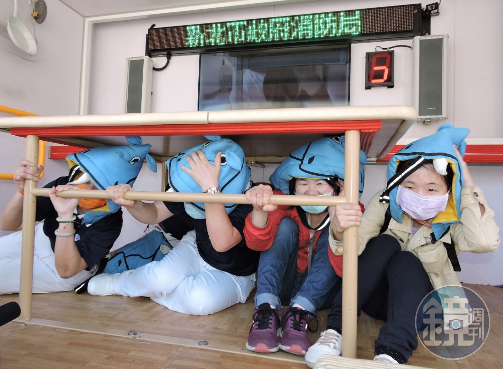 新北市消防局第三救災救護大隊專業團隊,為大小朋友設計親子互動闖關,透過分站體驗強化防災識能,將艱澀的議題寓教於樂趣味化,提升自我認知居安思危的重要性。
