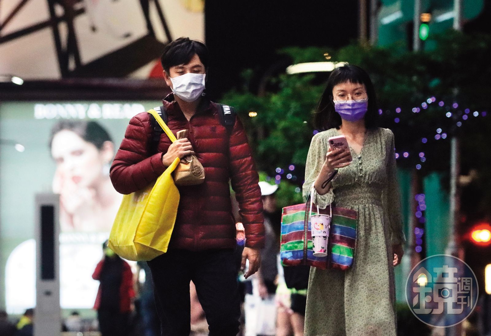 只見黃靖倫和太座提著各式袋子,大包小包走到附近的微風南山百貨,直奔美食街,但走了兩圈發現都要打烊了沒得吃,接著再轉往信義威秀,老婆先在飾品店閒晃了一番,黃靖倫擔任陪逛角色在一旁滑手機,看起來一臉快睡著的模樣,最後什麼也沒買,再到樓上的美食街覓食,買了漢堡王打包回家。黃靖倫帶著太太在路上漫步,原來是為了租借停在附近的共享機車,2人將身上大包小包塞進機車後,就共乘消失在黑色街頭裡。