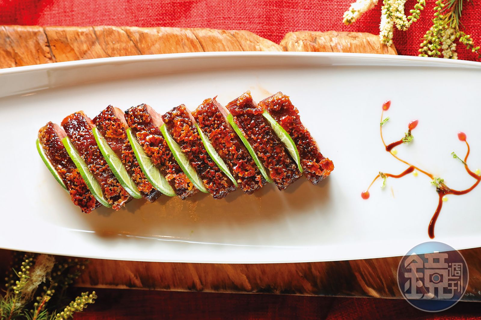 我們先見到華麗出場的九孔鮑,入口卻是極熟悉的台式鹹蜆仔的味道;舒肥過的牛小排,表皮裹上二砂糖炙燒,冷卻後切片,夾上極薄的檸檬片,令人聯想到粵菜經典的脆皮叉燒,又想到義大利西西里的甜點Mafia。廣東人最擅長的煲湯,峯哥也很拿手,但他在響螺花膠雞湯中放入杭菊跟波本威士忌,為傳統滋味賦予新意,卻毫無違和感。
