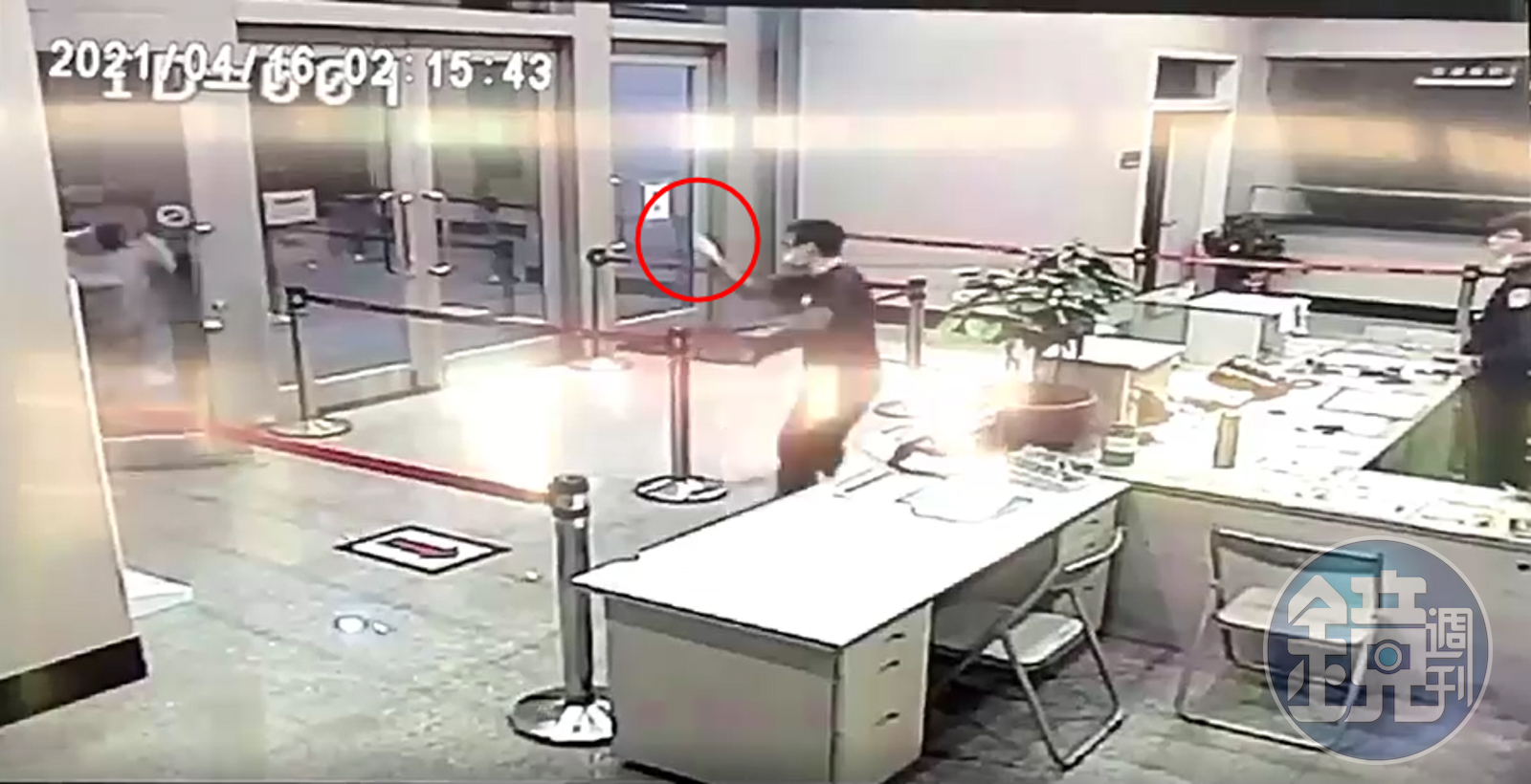 根據這段96秒的現場影片,原本徐男等人闖入所內時,值班台員警見狀起身遏止,結果楊姓教官竟不罷休,再度比中指挑釁,造成衝突事態擴大;幫眾不僅在所內追打楊姓教官,還拿起摺疊椅將電腦砸毀,毀損公物、聚眾鬥毆犯和妨害公務罪行明確。
