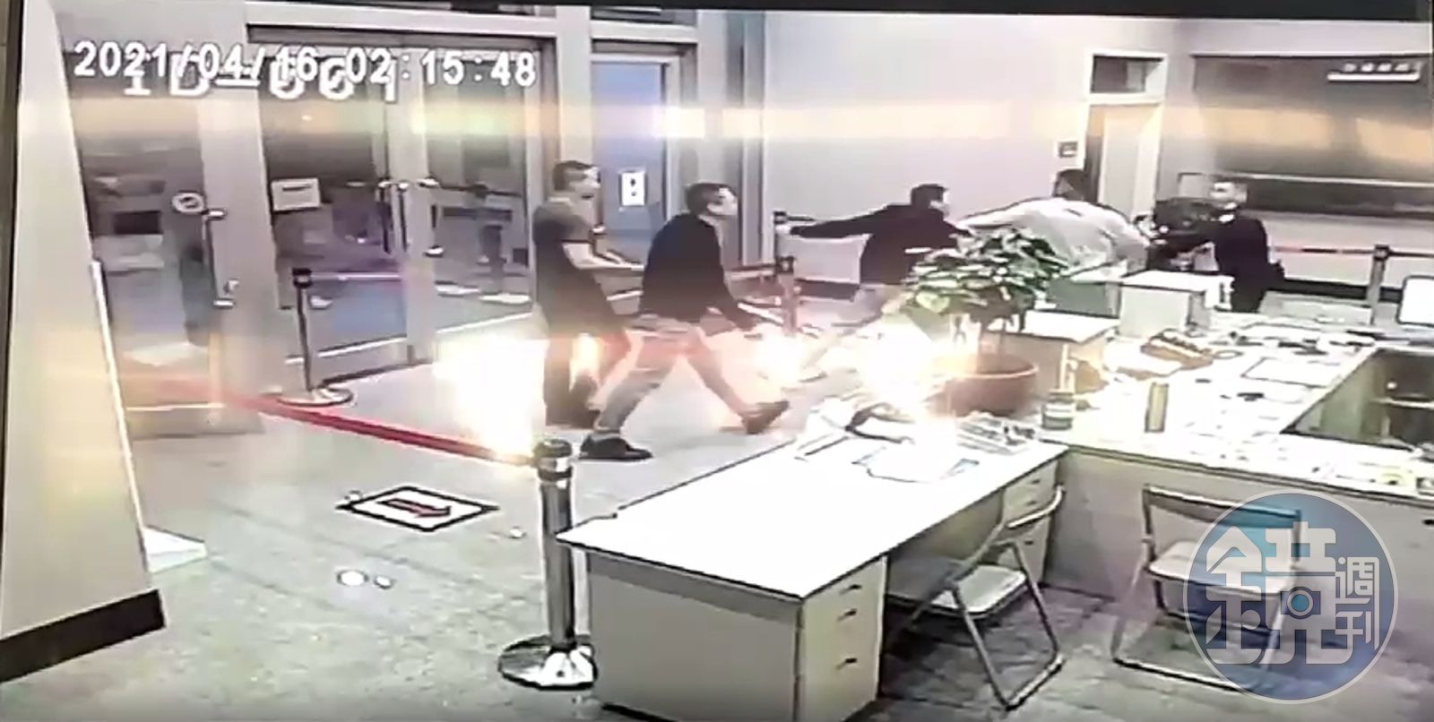 黑衣人進派出所鬧事,帶頭闖入分局的徐男遭起底是四海幫幫眾。(翻攝畫面)發布時間:2021.05.03 12:45 臺北時間