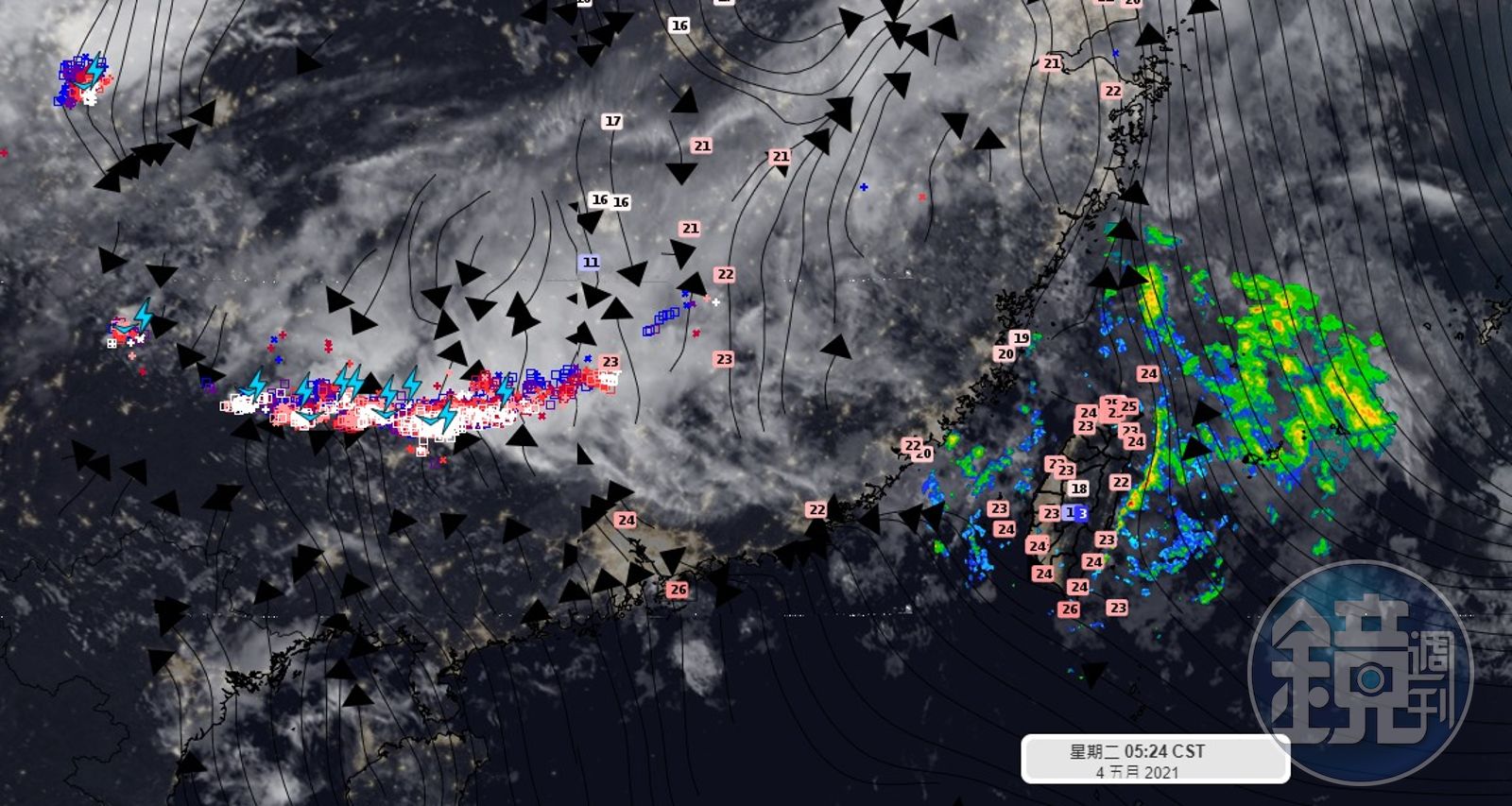 彭啟明也於臉書po文分析,指今天天氣會比昨天晴朗些,而在中國南方正有道鋒面雲系發展中,可以看到很旺盛的對流,「這對當地會有顯著的劇烈降雨,很可惜,這波鋒面明天接近台灣時,可能就顯著弱化掉」,中南部雖然有陣雨或午後對流降雨,但除非有中小尺度對流系統突然發展起來,不然這波鋒面所帶來的降雨可能不多。