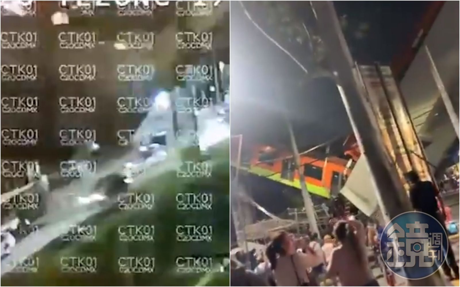 從監視器畫面看到,混凝土結構的橋梁無預警崩塌掉落,現場滿是灰塵濃煙,地鐵列車隨之出軌掉落地面,車廂折斷呈現V字型,而當時地面上還有車輛經過,也遭崩塌的橋梁壓毀。