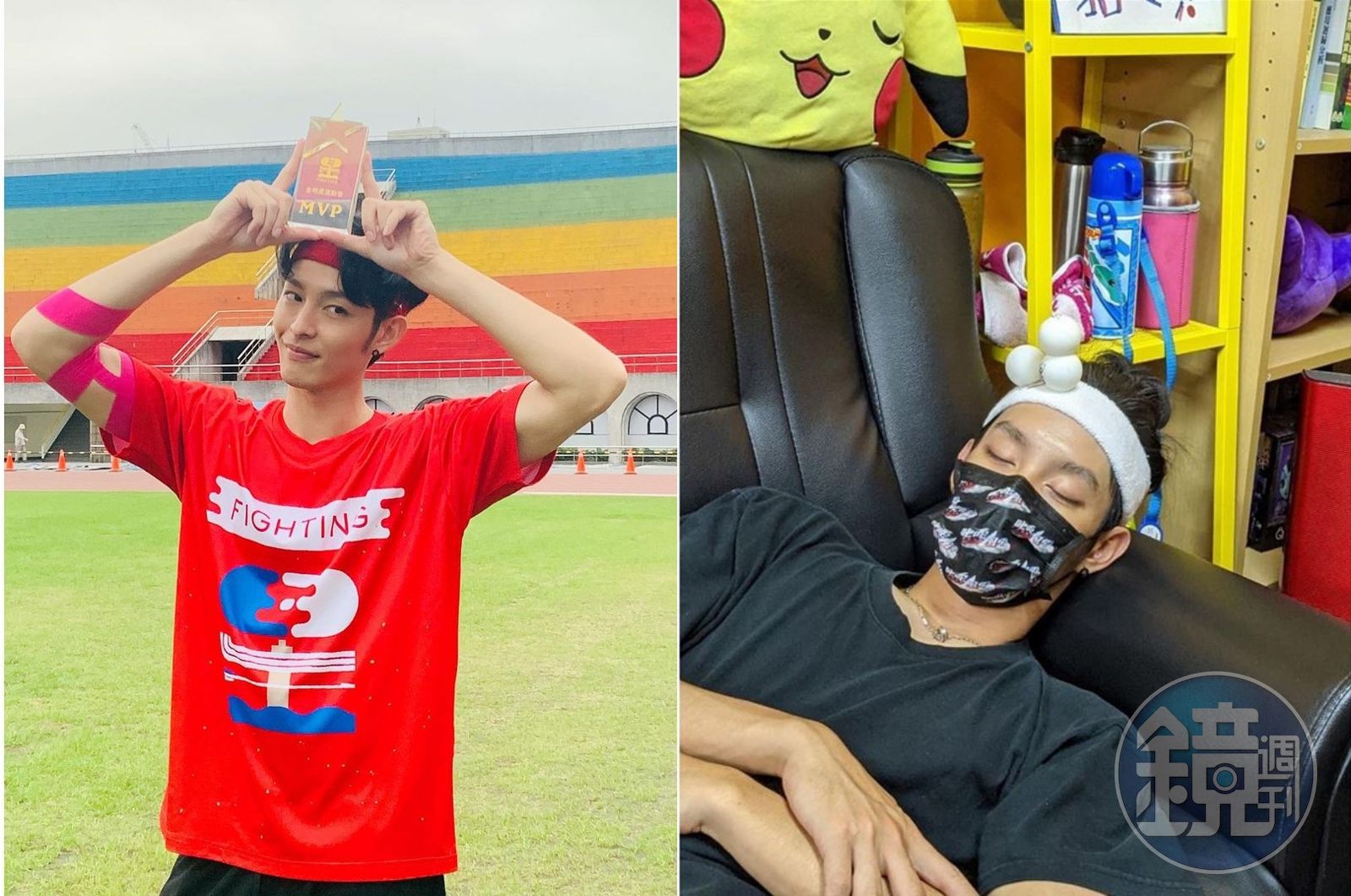 主演數部電影,在演藝圈機會看漲的曹佑寧,因為曾是前棒球國手,挾帶國手優勢參加《全明星運動會》第2季,表現果然一如預期的好,開播10集拿下2座MVP。他跟紅隊隊友因集訓有好感情,近日他在自主訓練的空檔躺著休息,江宏傑則在他身上堆乒乓球,舉止頗為搞笑。