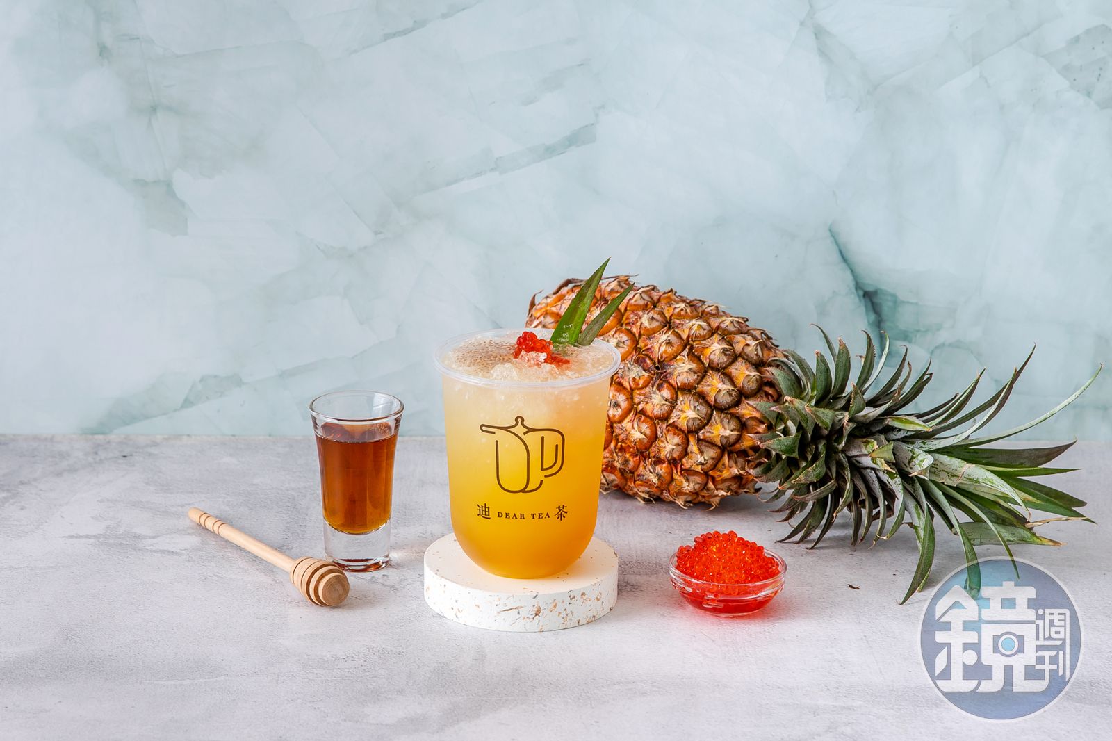 芭樂和綠茶也是相當受歡迎的組合,迪茶與彰化二水鄉芭樂農家,採契作方式包下10棵珍珠芭樂樹,「整顆芭樂綠茶」以綠茶、四季春、芭樂晶球調成,能喝到慢磨萃取整顆芭樂連肉帶心的甜美;粉嫩漸層的「櫻花芭樂晶球冰沙」,則用櫻花果露與新鮮芭樂調出雪泥冰沙,鹽漬梅子般的風味和芭樂也很速配。
