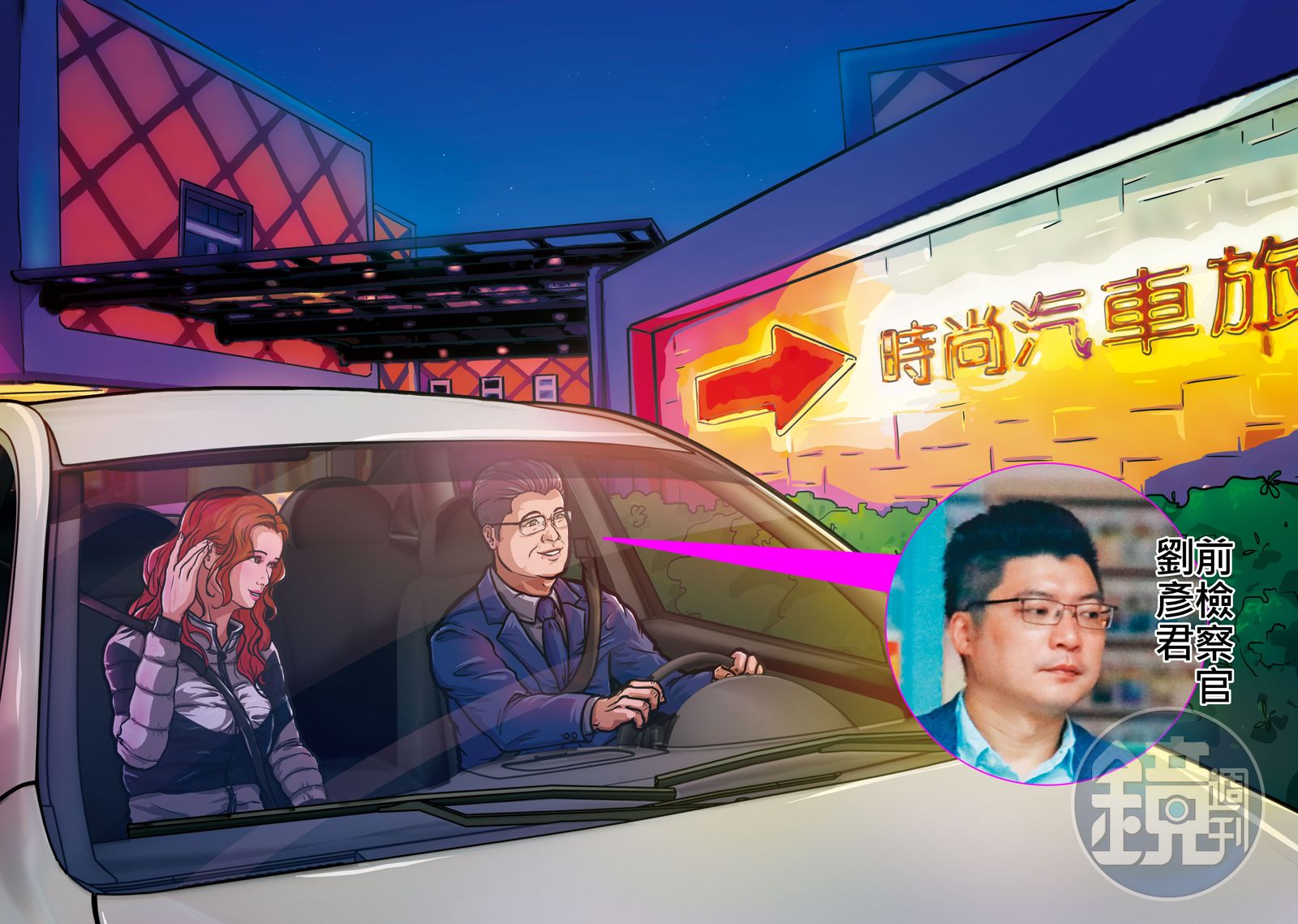 劉彥君載到人後,立即驅車進入汽車旅館,政風人員在外守著,同樣過了75分鐘左右,才見他開車出來,並在薇閣外200公尺處停車,讓該名長髮正妹下車,女生下車前還溫柔地親吻劉彥君,之後,劉才開車返回北檢。