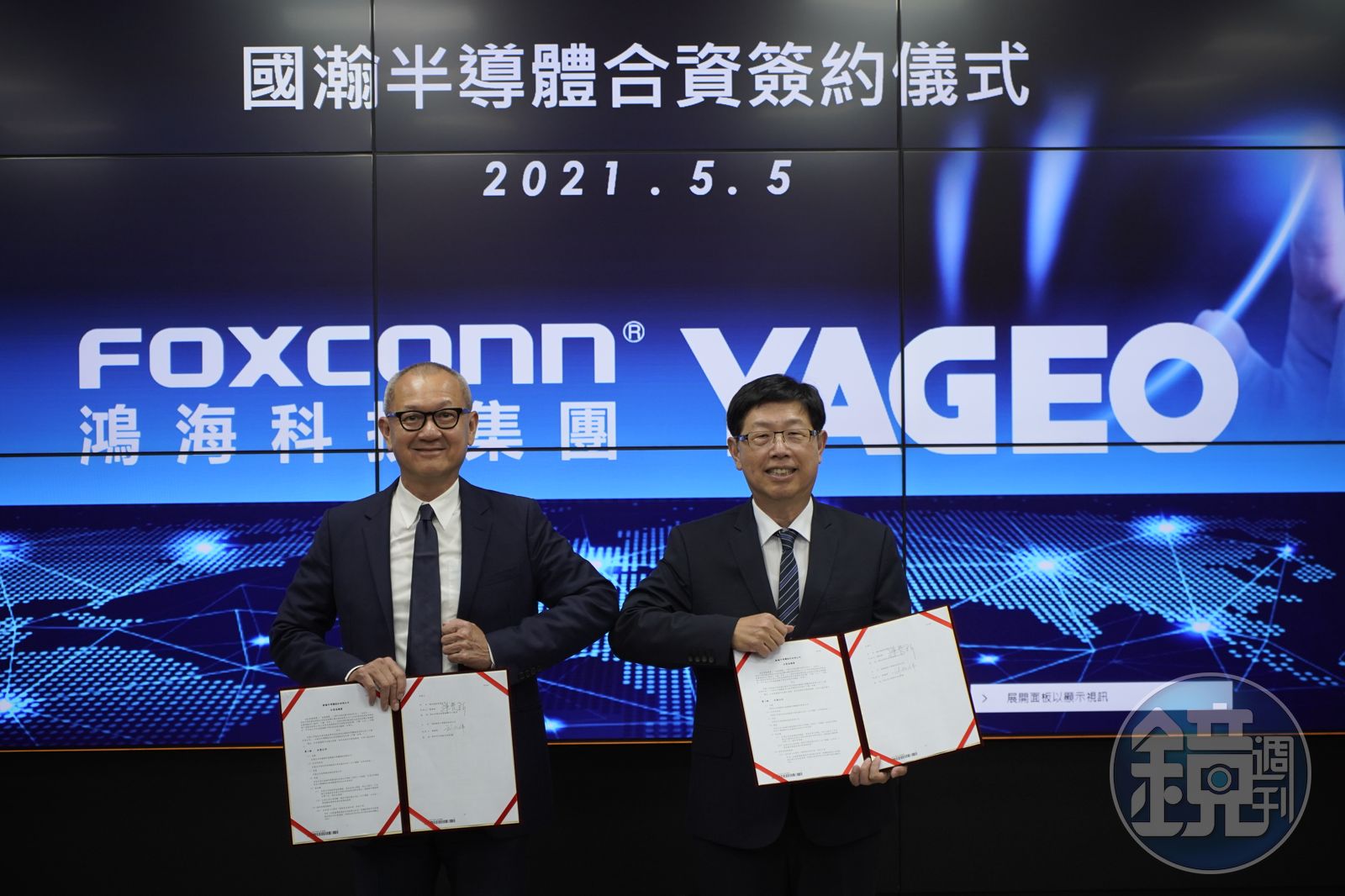 國巨集團陳泰銘董事長與鴻海科技集團劉揚偉董事長親自出席,簽署合資公司成立的合約協議。