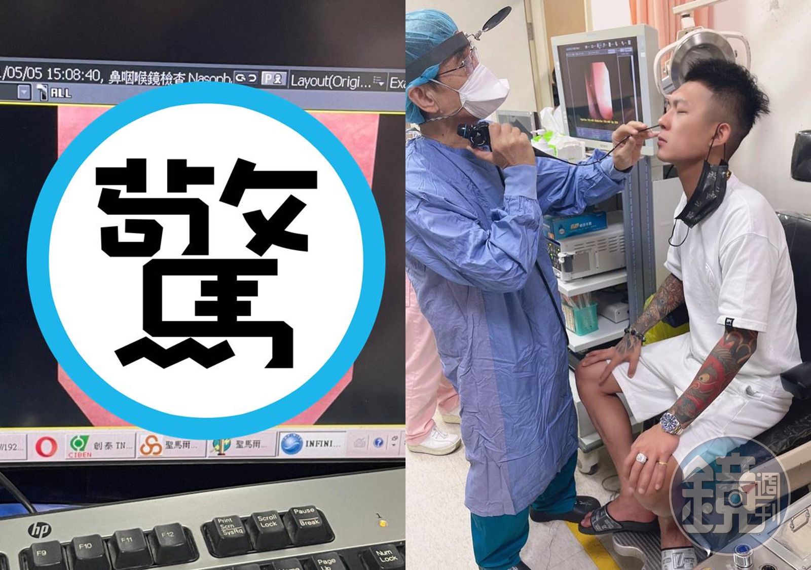 鳳梨就醫檢查發現聲帶出現一片白斑,醫師建議他先減少工作量、調整生活作息。(翻攝自鳳梨 吳泓逸臉書)