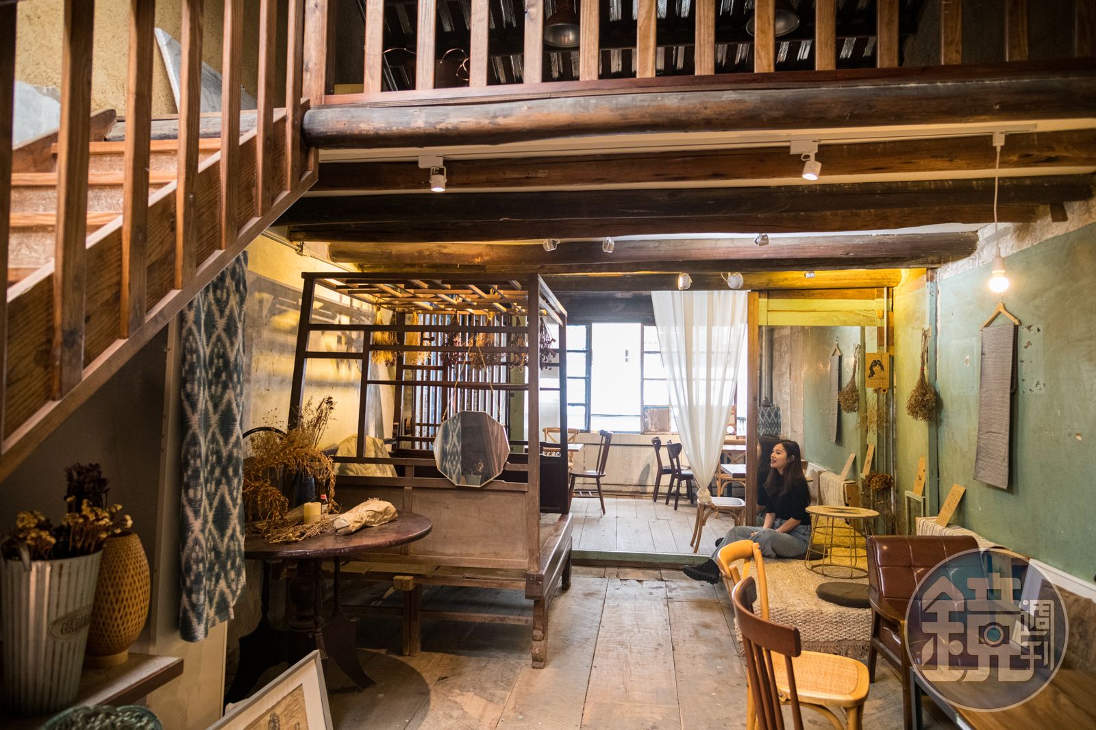 上樓時,嘎吱作響的陡峭樓梯盡顯老屋嬌貴,修繕老房其實比蓋新房子還花錢,但歲月流逝的風韻,再多錢也買不著,老宅魅力深深吸引著我,2樓用餐空間裡頭擺放著原屋主留下的老式裁縫機、八腳床等,古樸中帶著小清新,完美詮釋台式美學。