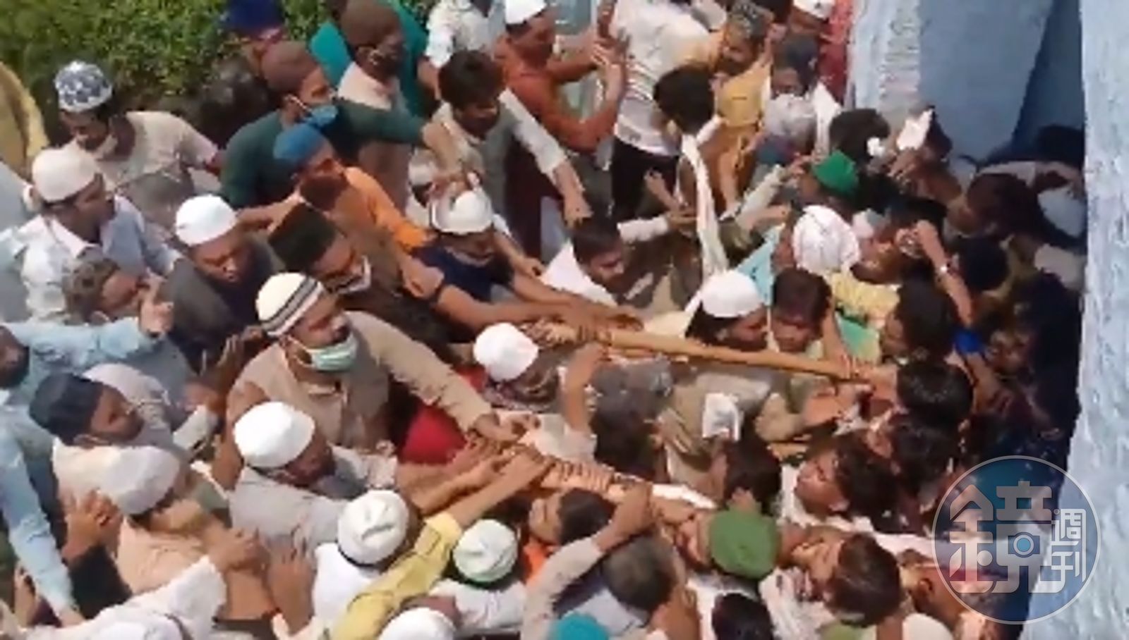 根據印度《Republic World》報導,北方邦(Uttar Pradesh)伊斯蘭宗教領袖卡德里(Hazrat Abdul Mohammad Salimul Qadri)於本月8日凌晨病逝,而葬禮在昨(10日)舉行,數千名信眾抬著裝著「卡德里遺體」的紅木箱湧入街道,全部的人擠在一團向前行,完全無視政府防疫的社交距離規定,且幾乎沒有人佩戴口罩,場面相當驚人。
