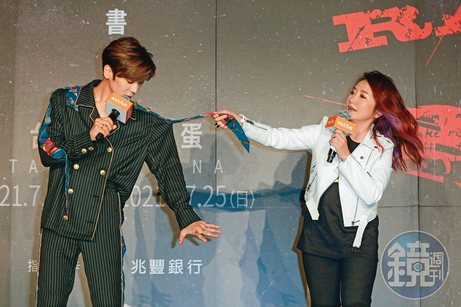 陶晶瑩(右)隨手一拔,畢書盡(左)就被扯過去,千萬不要低估地方媽媽的力量。(抖)發布時間:2021.05.15 05:58 臺北時間