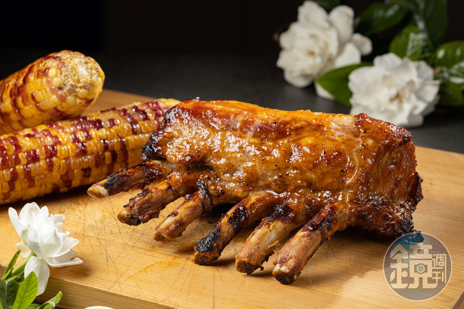 我老婆的姐姐常常送我品質極佳的玉米,因為懷念廟口烤番麥的味道,放兩支玉米入烤箱,同樣涮上烤肉醬。這時我眼睛盯著烤箱,大約每隔5至10分鐘打開烤箱,刷一刷烤肉醬,並將肉排翻面,繼續刷醬。