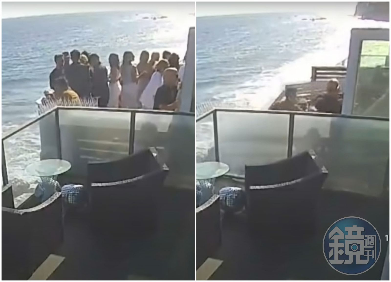 沒想到下午5時許,懸空的陽台疑似承重超過負荷,下一秒竟向下崩塌,賓客和物品瞬間墜落,掉到海灘的岩岸,畫面相當怵目驚心。一名男性目擊者表示,當時他也在那場生日派對上,結果突然聽到一聲巨響,他回憶:「然後我真的目睹所有好朋友和我的女朋友從4.5公尺高的地方掉落到石頭上,這是一個不尋常的事故,我不知道怎麼發生的。」