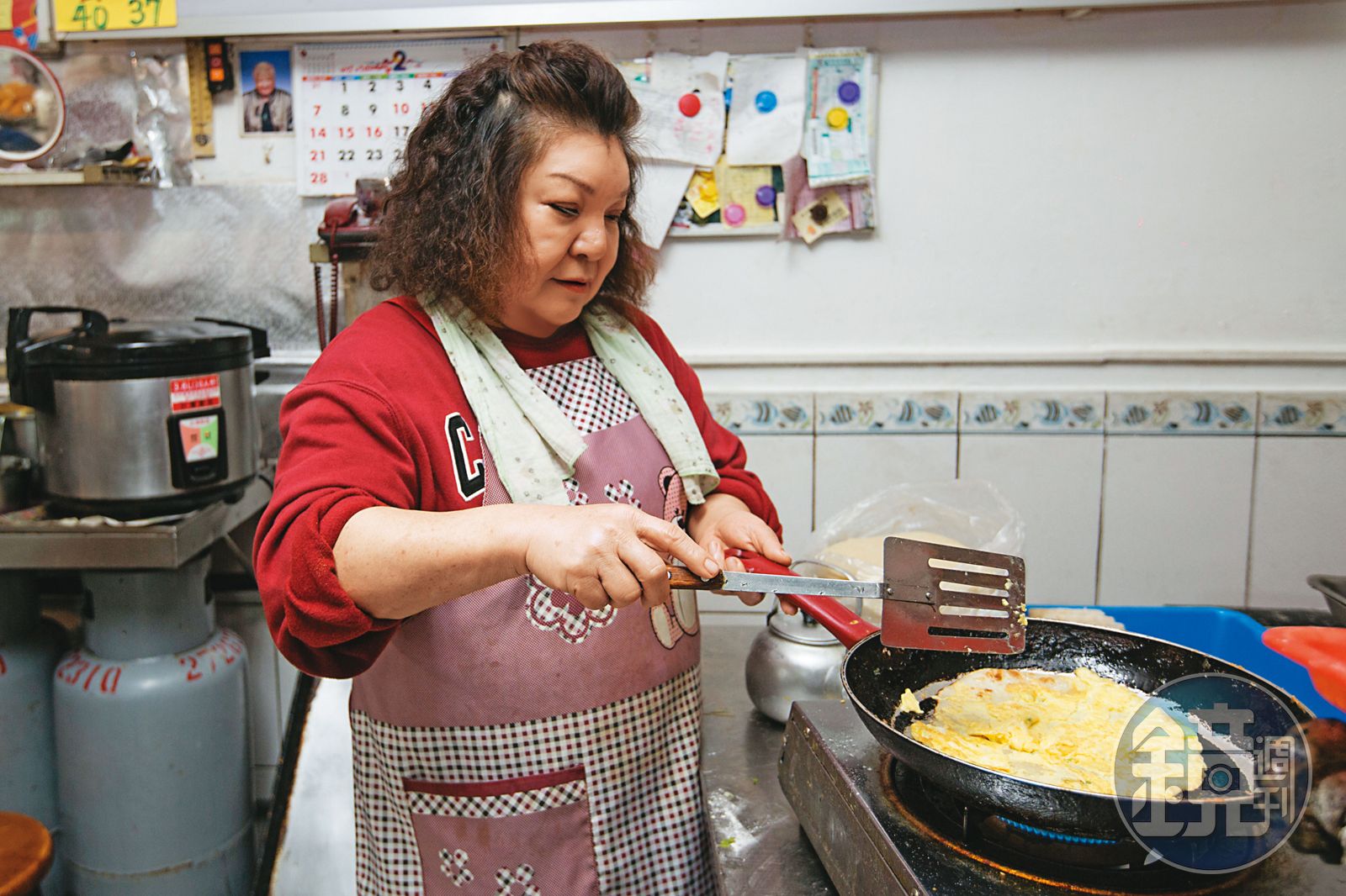 「我以前脾氣很糟的,現在變好。」秦菲菲一邊收拾煎台,一邊說自己過去遇到奧客態度就會很冷漠,現在年紀大了,看淡了,「有句老話『一種米養百樣人』,我現在覺得一種米是養千千萬萬的人,都不一樣,不要氣死自己。」但話說完沒多久,一個挑三揀四、東嫌西念的客人上門,她還是忍不住翻了白眼。
