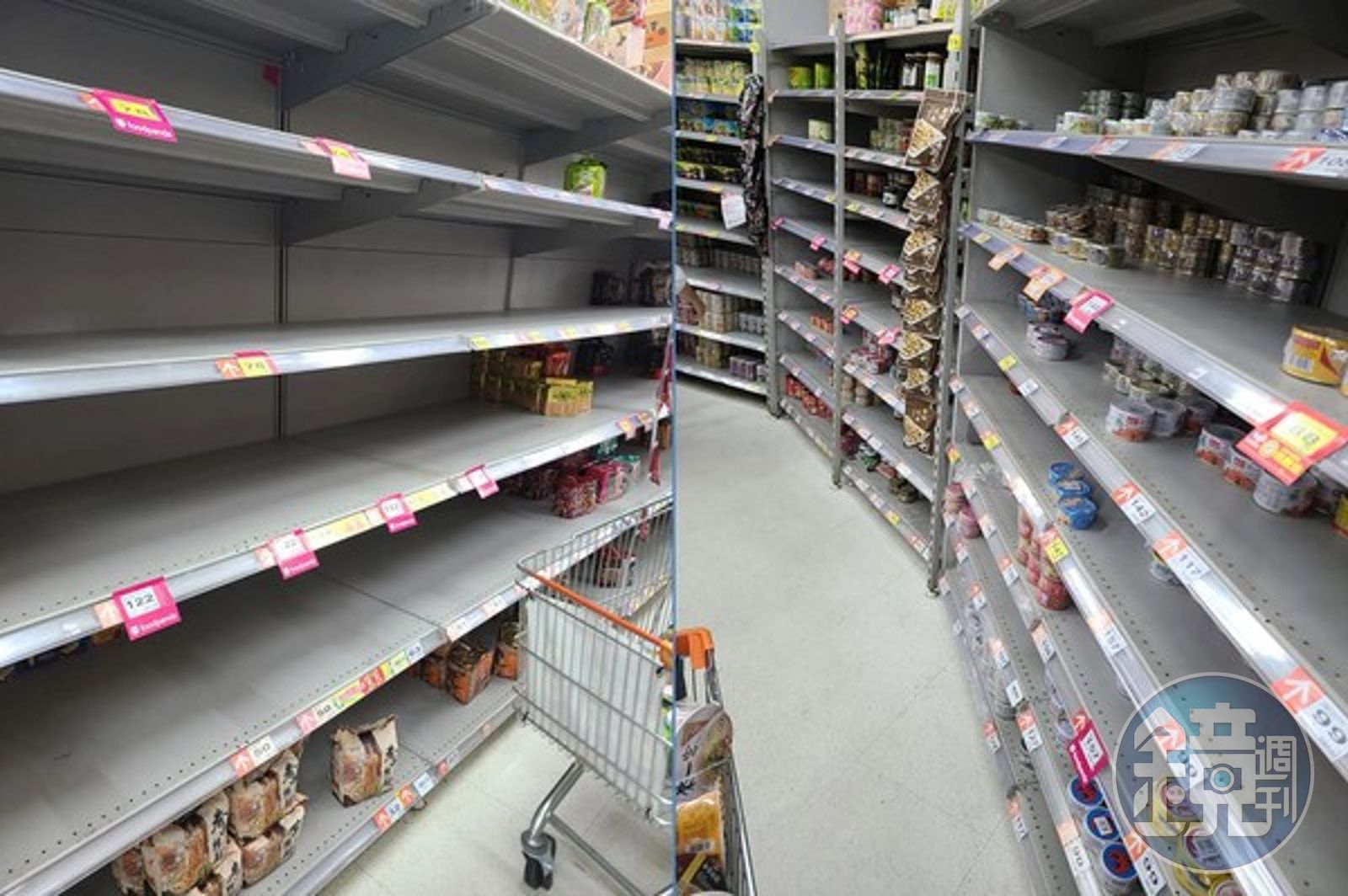 有網友昨晚分別在臉書「爆怨2公社」「細說淡水」社團發文,直指下班期間目擊大票民眾瘋狂囤購物資現象,搶購一空多半在泡麵區,架上幾乎被掃空,罐頭部分也被搶拿,生鮮架上也被搶到快空無一物。