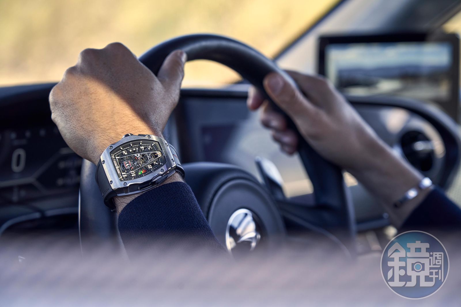 除了驚人的外裝設計,RM 40-01的「引擎」也是耗時費工,這是RICHARD MILLE首次在自動上鍊陀飛輪機芯上融入自主研發的動力儲存顯示、超大日期顯示和功能選擇器等功能。大型日期視窗可透過8點鐘位置按鈕去調整,至於動力儲存顯示則讓人想起像是油箱表的意象,而從機芯下部延伸至錶帶的橙色線條,則模仿了安裝在Speedtail後擋風玻璃上的垂直刹車燈。