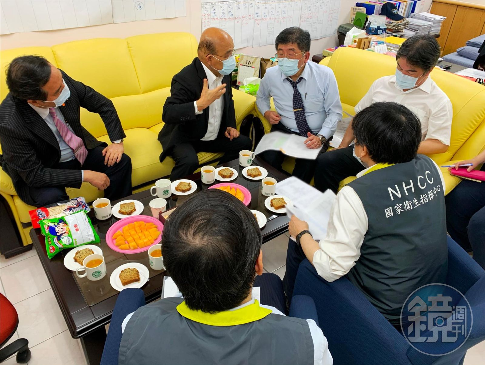 行政院長蘇貞昌昨晚間於臉書發文,表示自己在跑完下午的國安會議、台電應變會議的行程後,晚間便前往指揮中心,為辛苦的防疫團隊打氣。蘇貞昌指稱,現在全世界的疫情都在升溫,台灣也開始出現群聚感染,指揮中心的幹部們都相當疲憊,每天的疫調工作也是晚間才要展開。