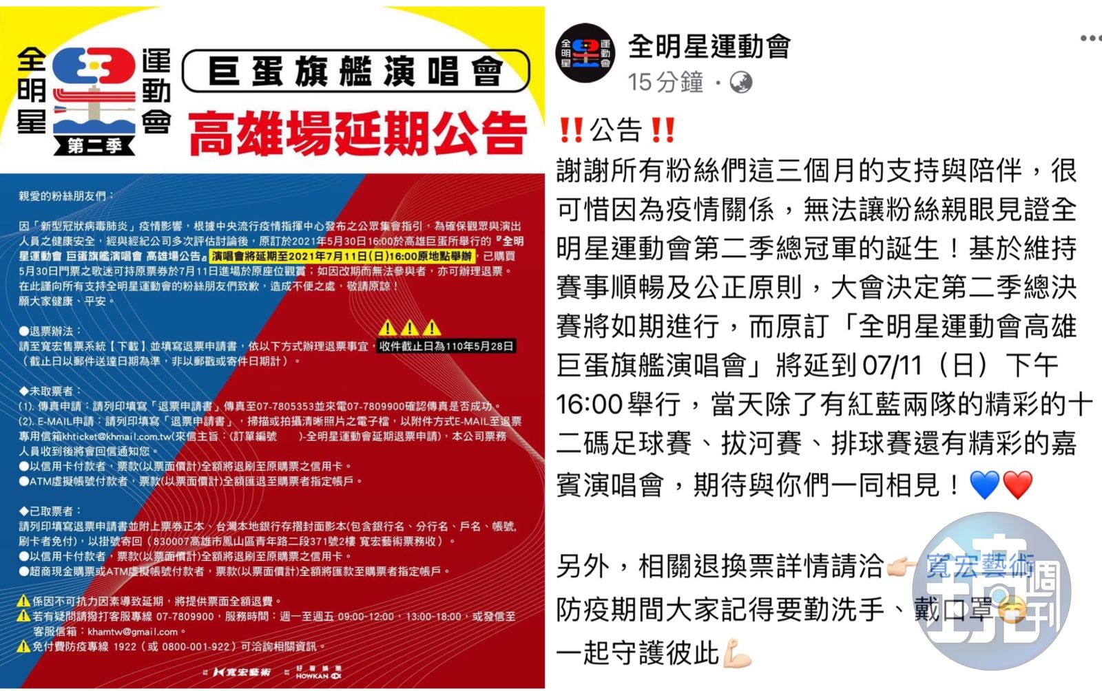 《全明星運動會》製作單位宣布《全明星運動會》第二季總決賽如期舉行,演唱會部分則延至7月11日舉辦。(翻攝自全明星運動會臉書)發布時間:2021.05.14 18:57 臺北時間