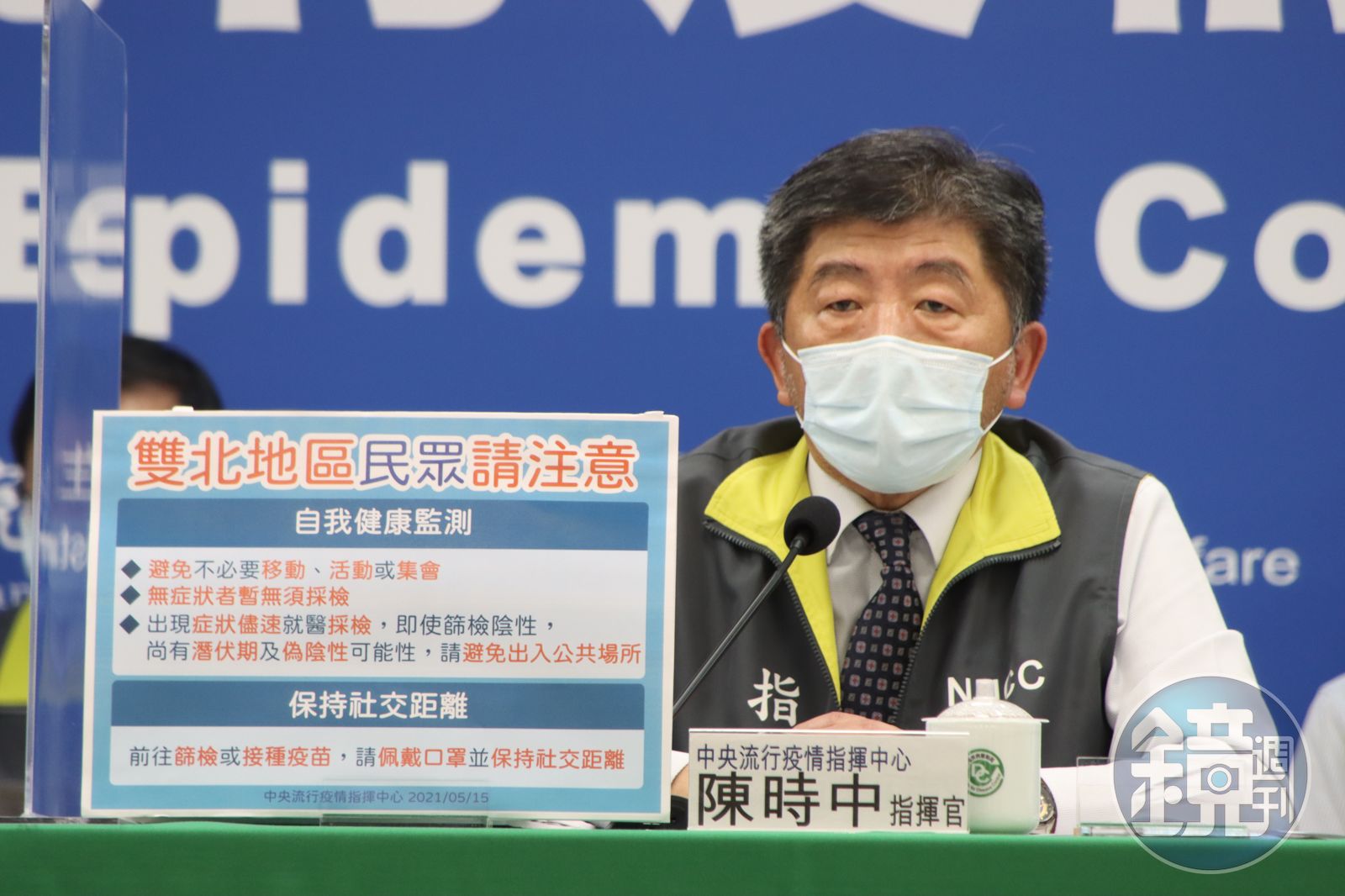 指揮官陳時中提醒雙北民眾注意事項。(指揮中心提供)發布時間:2021.05.15 14:43 臺北時間