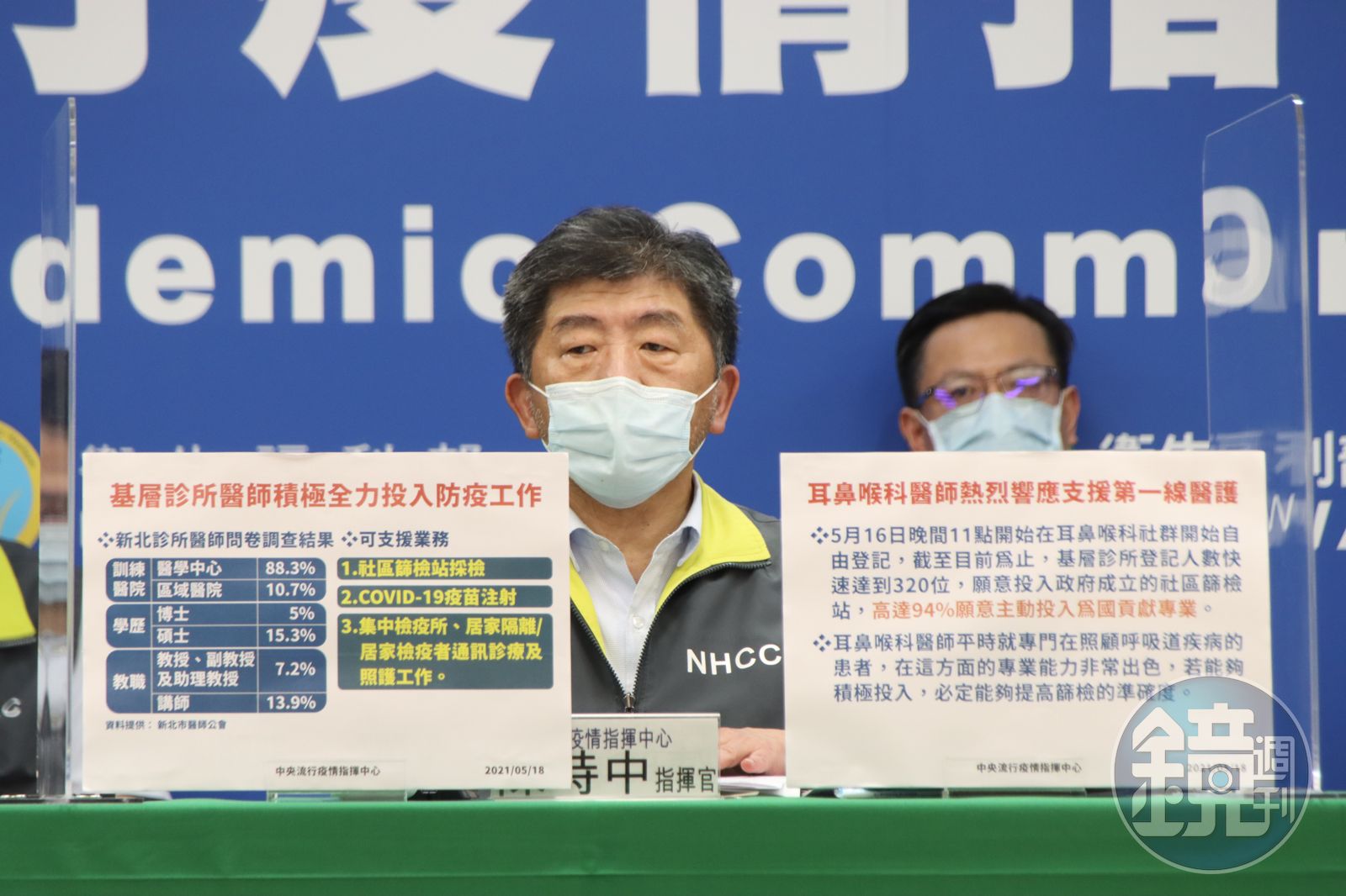有數百名耳鼻喉科醫師投入社區篩檢站,陳時中表達感謝。(指揮中心提供)