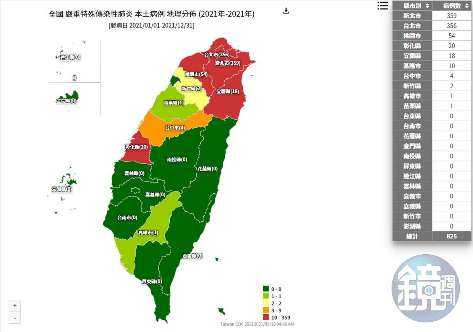 據疾管署網站資訊,今年至昨共有825例本土病例,再加今天確診共累積1,070。截至昨日,全台最多於新北市359人、台北市356人、桃園市54人、彰化縣20人、宜蘭縣18人、基隆市10人、台中市4人、新竹縣2人、苗栗縣1人、高雄市1人。而今日確診245案例,新竹市+1、新竹縣+2,預計疾管署網站明日會更新。