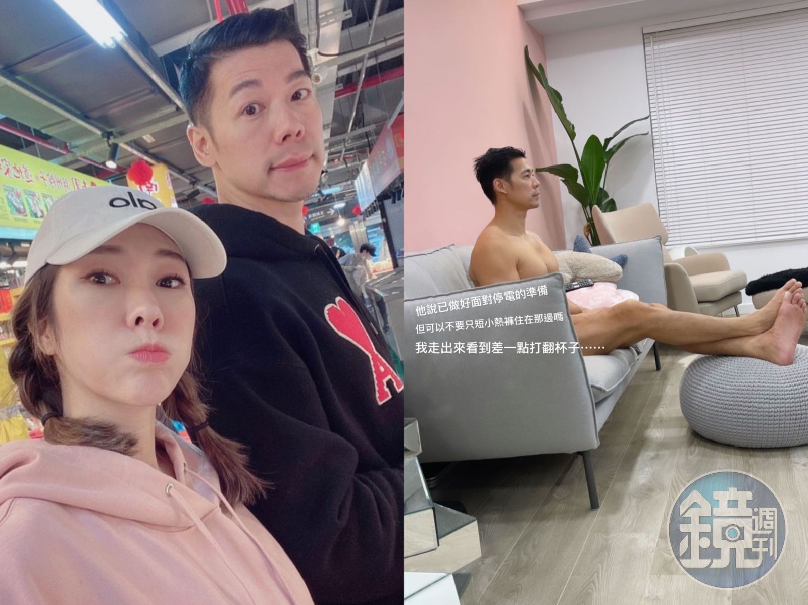 昨晚台電又停電,KIMIKO老公幾近裸體在家,讓KIMIKO超傻眼。(翻攝自KIMIKO IG)發布時間:2021.05.18 12:23 臺北時間