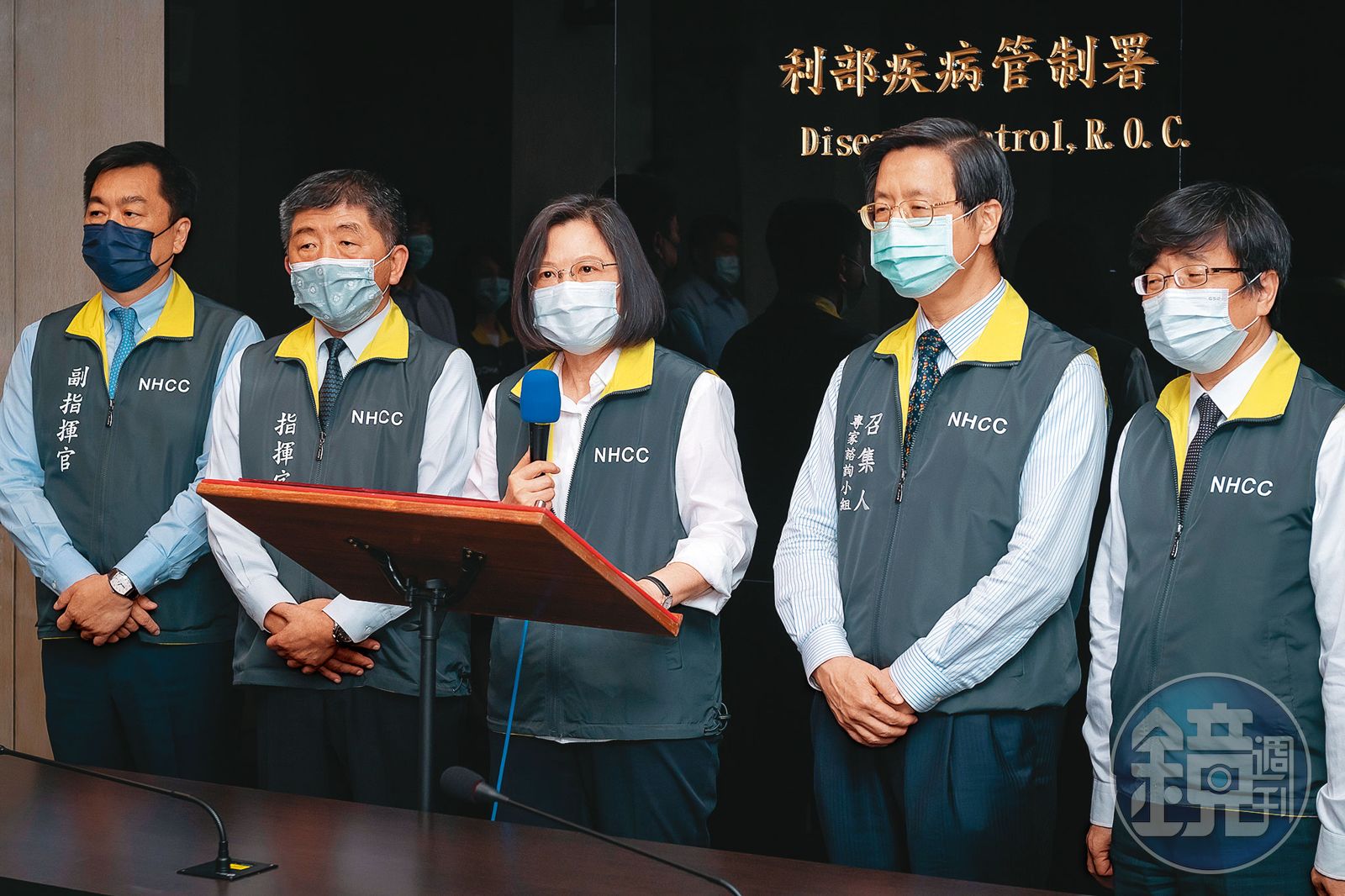 疫情挑戰嚴峻,總統蔡英文15日在臉書對國人喊話:「關鍵階段,每一個人都可以為阻斷傳播鏈盡一份心力。」行政院長蘇貞昌同天也說,在這場對抗病毒行動中,每個人都很重要,都是防疫國家隊一員、也都是切斷病毒傳播鏈的關鍵,請大家全力以赴,遵守防疫規定、不要聚眾搶買、別傳疫情謠言,「有了你的支持,台灣更有信心度過難關。」