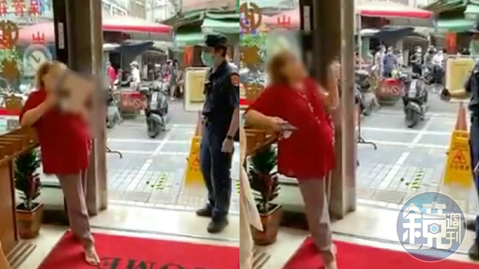 最後銀行保全看不下去,跟著上前大罵「沒戴口罩不能進來,亂七八糟,幹什麼,有沒有(防疫)法律的觀念」,但婦女還是鬼打牆追問,「什麼叫做實名制?」保全怒吼道,「妳沒有戴口罩不能進來」,沒想到婦女退到門邊,囂張表示:「我沒有進來啊!」