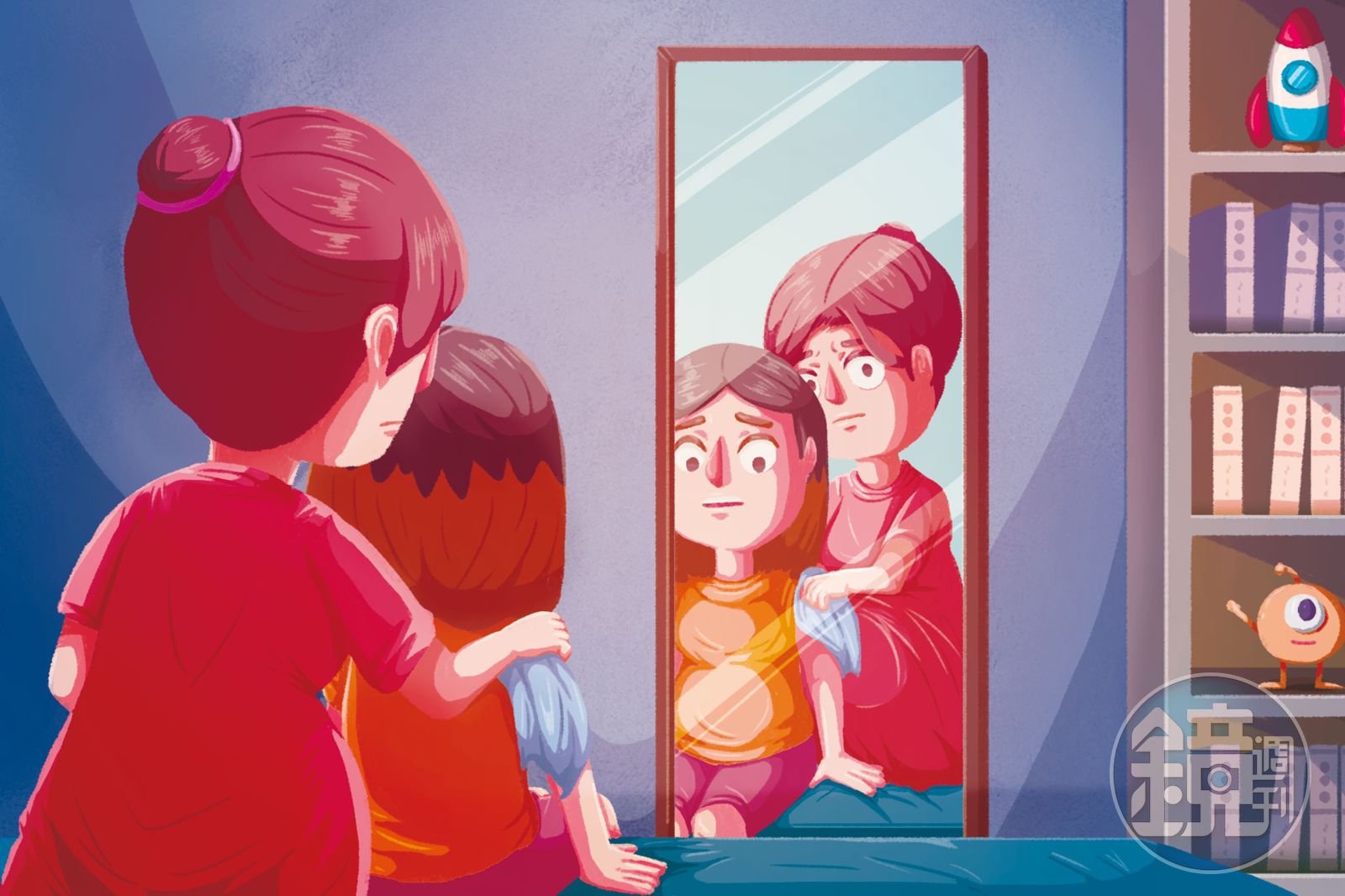 「人家說肚子裡的孩子是女生,產婦就會變得漂亮,如果是男孩子,產婦就會變得很醜。好像是真的,妳看生這一胎把我變成什麼樣子了?以前還沒懷孕前,我的體重一直都維持在50公斤以下,一懷孕就胖成這副德性,到快要生產前我連體重計都沒有勇氣站上去,肚子大到我連多走兩步路都覺得累,打個噴嚏都會漏尿。而且懷孕以前我是一顆痘痘都不會長的人,自從懷了軒軒以後,不僅臉上長滿了爛痘痘,連斑都長出來了。」小嬸看著鏡中的自己,懊惱地抱怨了起來。