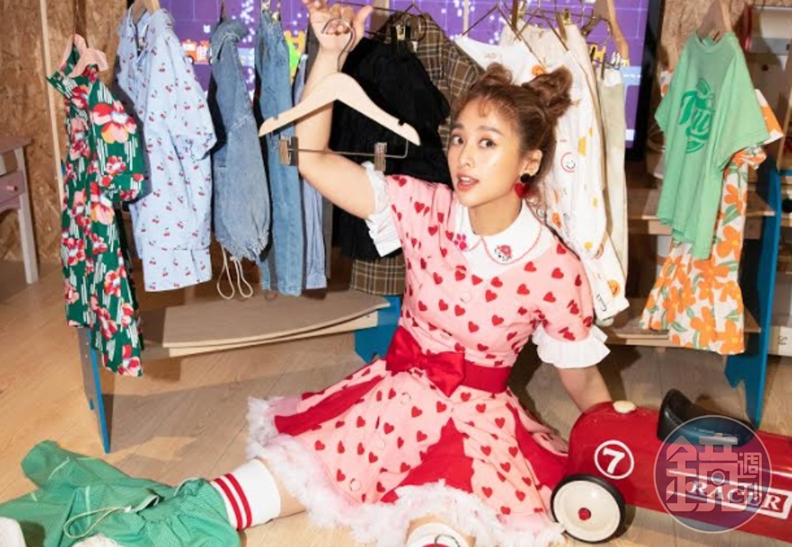 為了讓小朋友有親切感,吳映潔綁髮髻、穿連身粉紅色蓬蓬裙及長筒白靴,搭配現在小朋友最愛的卡通「汪汪隊」領巾,化身兒童台姐姐標配的模樣。除了造型上下工夫,吳映潔提早一個月跟3位小朋友培養感情,只是一開錄,3位小朋友完全失控,不但亂跑還無法搭話,乾弟弟Mimo直接用放屁攻擊,讓吳映潔笑到投降。