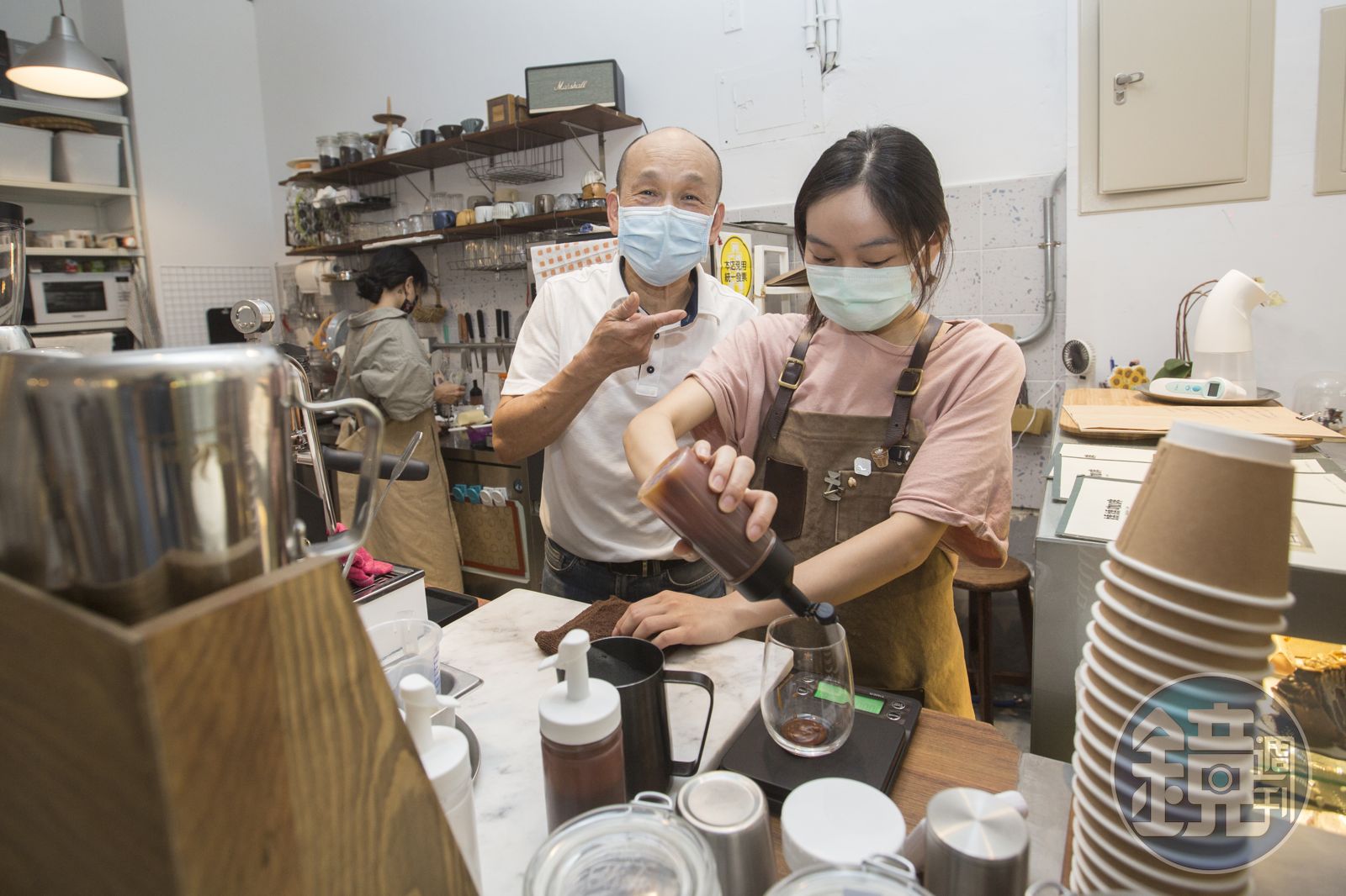 靠著經營小店,高全能拉拔1子2女長大,子女從小耳濡目染,也對餐飲有興趣,長子繼承父親的好手藝,2個女兒則通力合作,在景美經營「嬌嬌咖啡」,二女兒負責甜點、小女兒煮得一手好咖啡,20多歲小女孩精明幹練又有生意頭腦,一手操辦日系裝潢,全不用父親擔心,疫情前已有不錯口碑,高全能在自家店忙得滿身汗,抽空到咖啡廳喝涼喘口氣,閒不下來的他見女兒們忙碌不已,捲起袖子幫忙洗碗,堪稱地表最暖老爸。