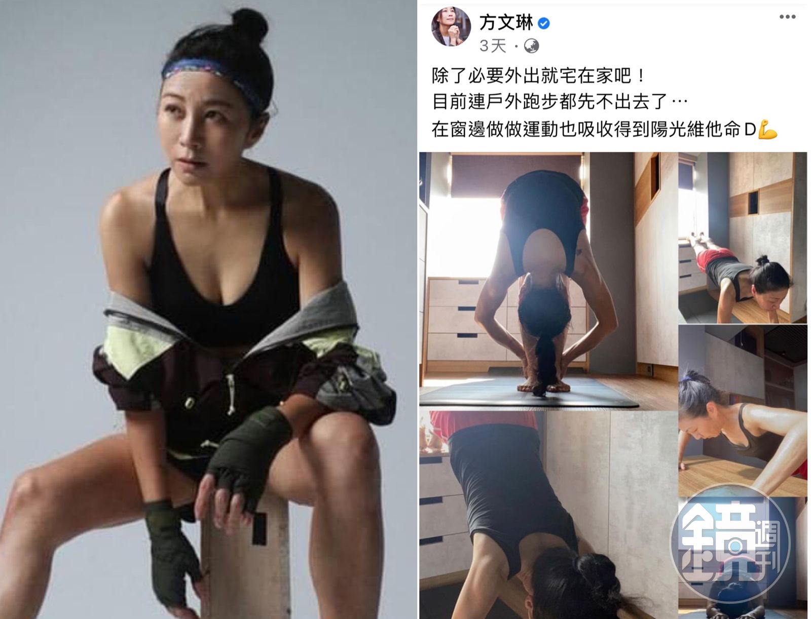 方文琳即便疫情升溫不方便出外運動,仍堅持在室內做足運動量。(翻攝自方文琳臉書)發布時間:2021.05.20 17:59 臺北時間