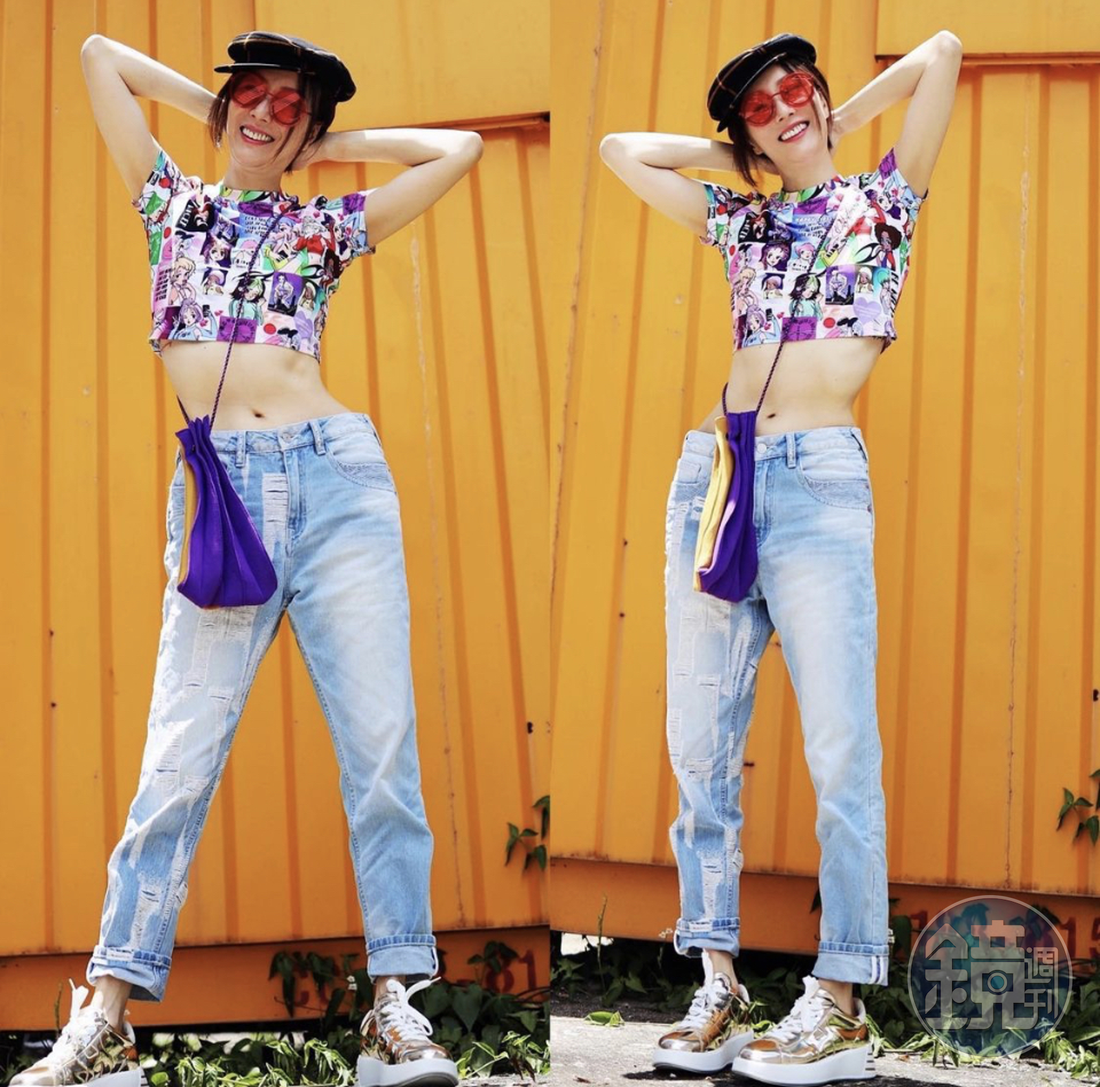 鄭秀文在自己的IG po出大露小蠻腰的新照,腳上穿的正是HOGAN的金色Rebel鞋。(翻攝自鄭秀文IG)發布時間:2021.05.21 17:22 臺北時間