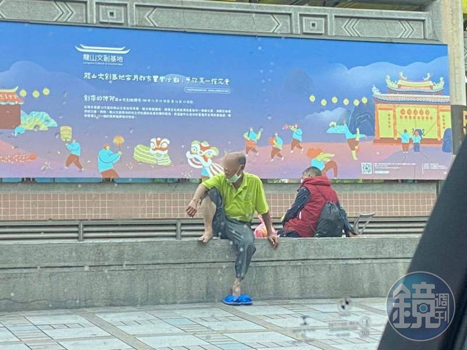 原PO在臉書社團「爆怨2公社」張貼多張照片表示,儘管政府疾聲呼籲民眾避免群聚,但位於台北市萬華區的龍山寺外圍還是可看到不少人聚集,有人穿著拖鞋席地而坐,未戴好口罩,口鼻全露出,還有人在路邊抽煙,曝露在高風險環境中。