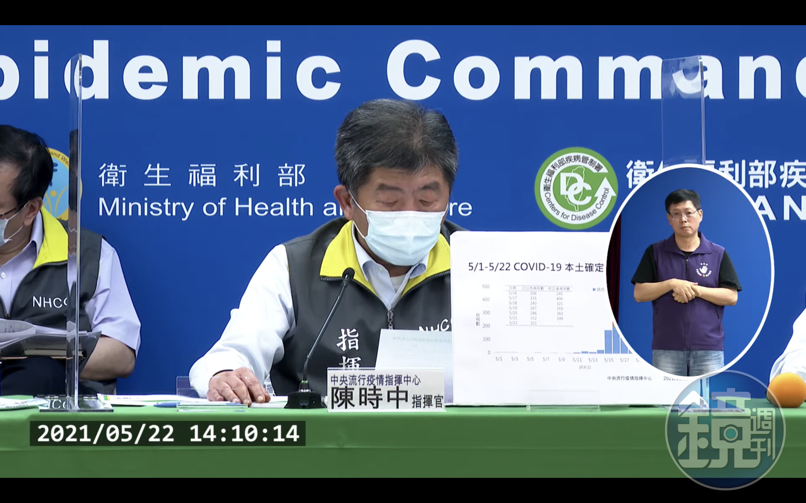 指揮中心表示,今日新增之321例本土病例,為162例男性、159例女性,年齡介於未滿5歲至90多歲,發病日/採檢日介於今年5月10日至5月21日;校正回歸個案400例中,為185例男性、215例女性,年齡介於未滿5歲至90多歲,發病日/採檢日介於5月7日至5月20日。
