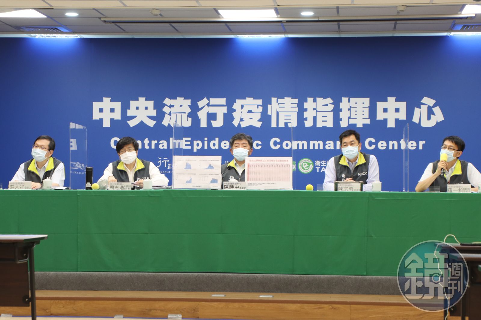 針對死亡病例,莊人祥(左1)指出,目前僅有案4284到院前死亡,相關狀況則待進一步確認。(指揮中心提供)發布時間:2021.05.24 15:21 臺北時間