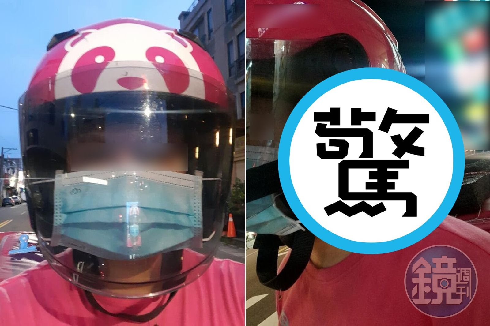 本土疫情持續升溫,高雄、雙北已宣布餐廳停止內用,外送成為不少民眾獲取物資的重要管道,美食外送平台加強防疫措施,要求旗下夥伴「務必正確配戴口罩」。然而長期配戴一般醫療用口罩難免不適,一名外送員就化身小小發明家,在安全帽側邊黏貼「無痕掛勾」代替耳朵,並將此妙招分享到社團,沒想到同業並不欣賞。