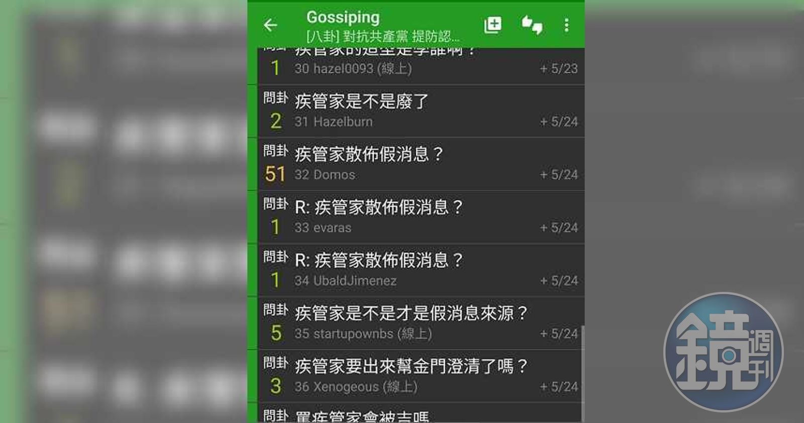 八卦版主也表示,「視情況等儘速查處報告出來,或是王定宇有滾動式修正言論,將不排除板主群討論因應措施,以利正常使用八卦板的鄉民板友可辯白免受不白之冤! 相信政府、相信黨絕對不會冤枉任何一個好人,也不會放過隨便一個造謠五毛」。