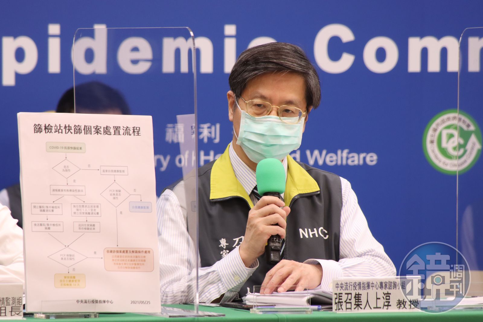 另外,張上淳也指稱,台灣目前沒有廠商特別引進歐美的居家唾液檢測產品,主要是台灣以社區篩檢和家中隔離就足以防止病毒傳播,沒有到需要病人自行在家裡篩檢的程度。至於長照機構若有專業醫事人員,可依規定自行做快篩的初步檢驗,後續再由地方政府以其他方式裁定確診。