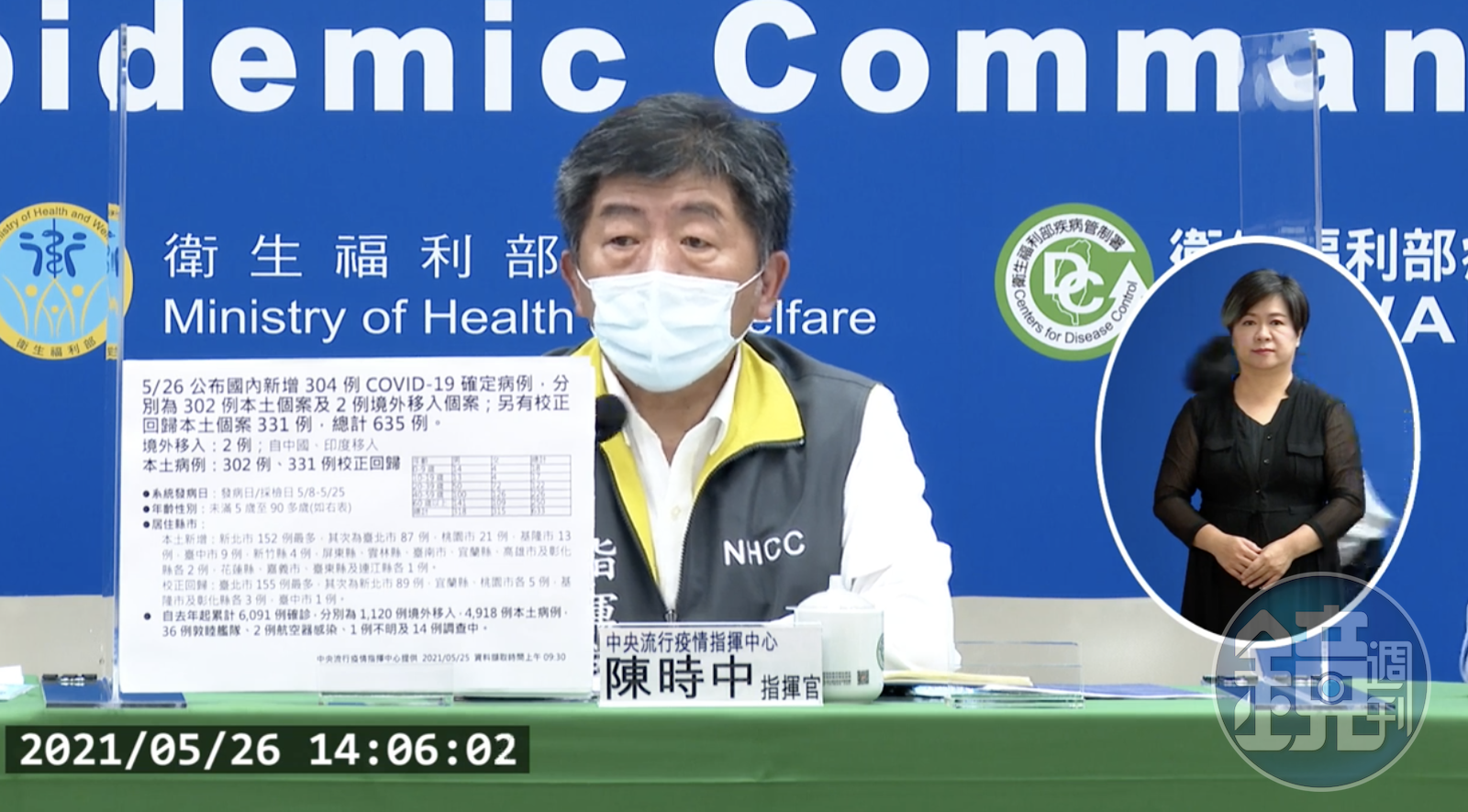 指揮中心表示,今日新增之302例本土病例,為158例男性,144例女性,年齡介於未滿5歲至90多歲,發病日介於年5月8日至5月25日;個案分布以新北市152例最多,其次為台北市87例,桃園市21例,基隆市13例,台中市9例,新竹縣4例,屏東縣、雲林縣、台南市、宜蘭縣、高雄市及彰化縣各2例,花蓮縣、嘉義市、台東縣及連江縣各1例。
