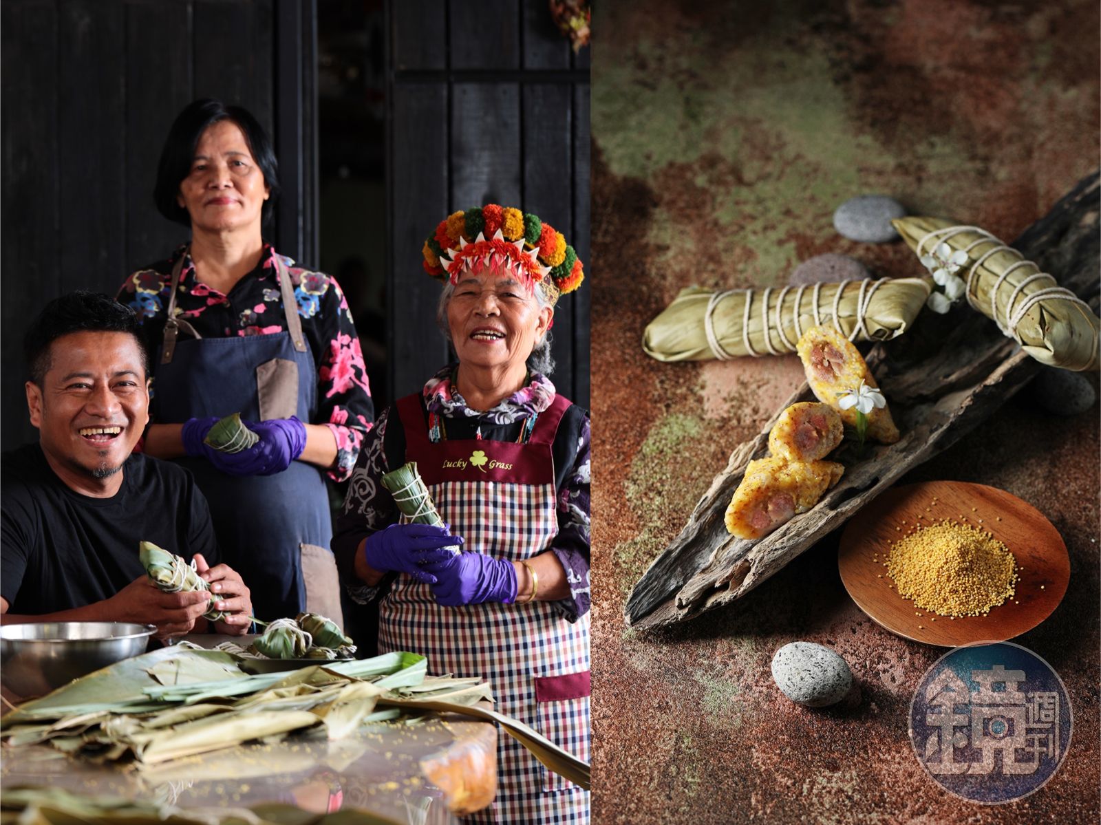 不同於漢人粽子個食概念,小米粽不是一人一顆,而是綁成約手肘狀,煮熟後切段共享。小米粽製作費時,須多人合力完成,結婚時,賓客越多、包的粽子就越多,代表祝福也越多。