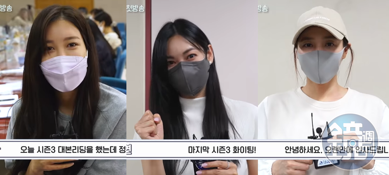 《Penthouse上流戰爭》第3季即將開播,主要演員李智雅(左起)、金素妍柳真戴口罩出席讀本會議。(翻攝自SBS Catch YouTube畫面)發布時間:2021.05.26 13:05 臺北時間