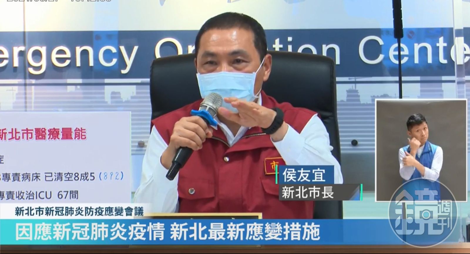 新北市長侯友宜稍早召開防疫應變會議指出,新北市目前高風險熱區有11區,板橋、中和仍是最嚴重的兩區。(翻攝自我的新北市直播)發布時間:2021.05.27 18:19 臺北時間