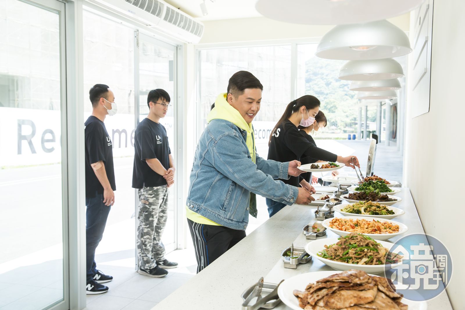 「這是我們廚師練兵的地方。要開餐廳,廚師要先來這邊練兵、培訓,再從這邊調派出去。」員工餐定價一餐80元吃到飽,菜色中西合併,「那3家餐廳的廚師,每個人都要輪流來宜蘭這邊煮給員工吃,我也會吃。」