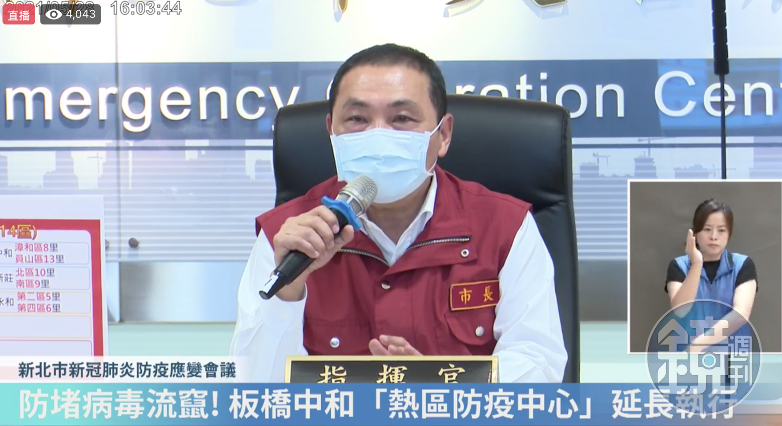 侯友宜於疫情應變記者會指出,新北有4,684人正居家隔離,總累積確診為2,887例,在今天136例確診中,其中板橋有24例為最高,接著為中和22例、永和21例,其他落在三重、新莊、土城,皆為防疫熱區。而社區篩檢站為總篩檢人次為14,907人,陽性率為3.2%。