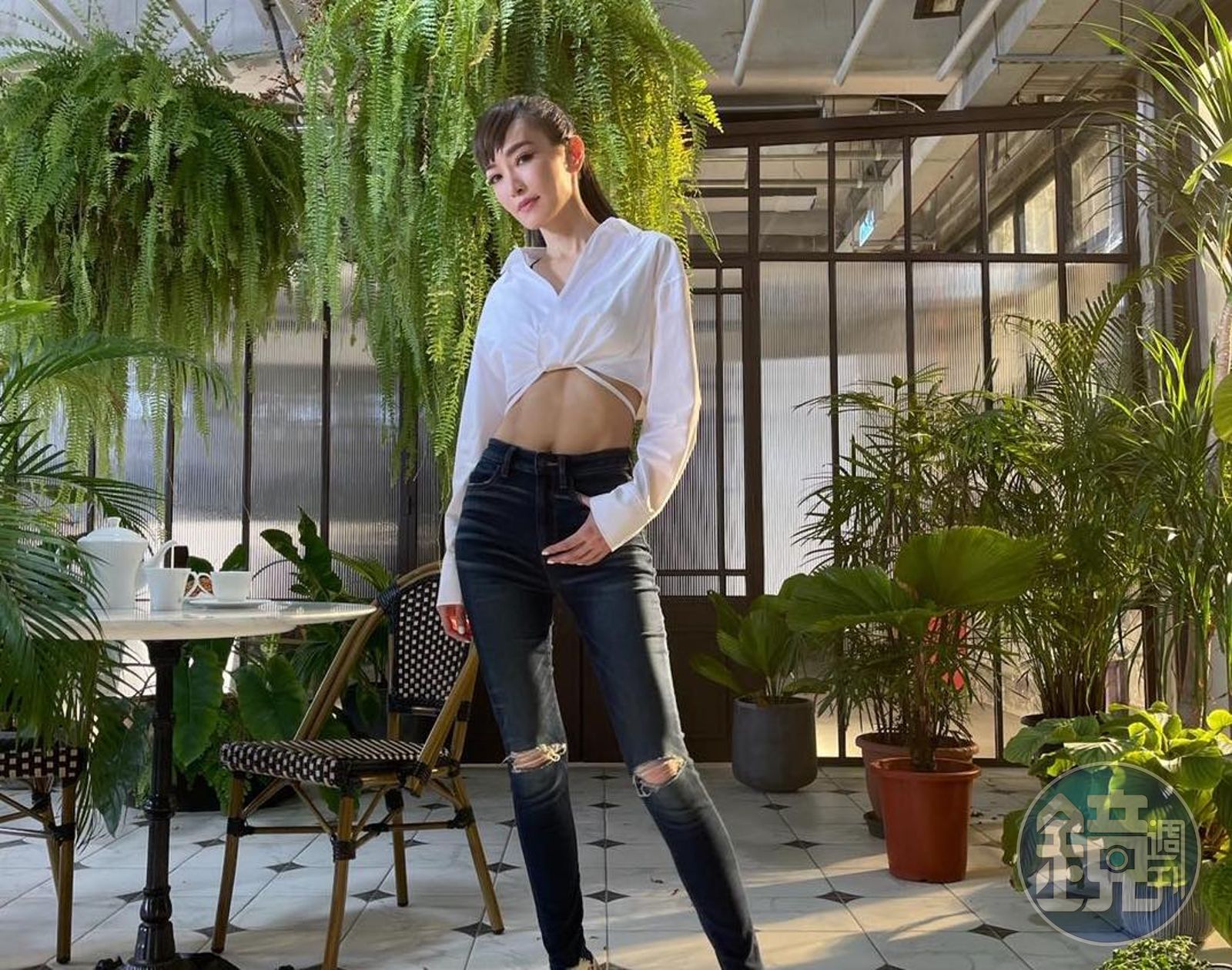 謝金燕上半身穿短版白襯衫、下半身搭配貼身牛仔褲,並露出腰部的健美腹肌。(翻攝自謝金燕臉書)謝金燕平常有健身,腰部的11字腹肌清晰可見。(翻攝自謝金燕臉書)謝金燕在社群平台分享一組照片,上半身是穿短版白襯衫、下半身搭配貼身牛仔褲,並露出腰部的健美腹肌,明顯線條不禁讓粉絲驚嘆,「姐姐也太正了吧,炫腹炫起來」「那腹肌真的強大」「這腹肌太狂了」「姐姐帥」「超完美身材」,還有粉絲問:「妳的腹肌可以分我一點嗎?」,謝金燕看到後妙回:「姐的毅力可以分給你很多點」,再度為粉絲打氣。