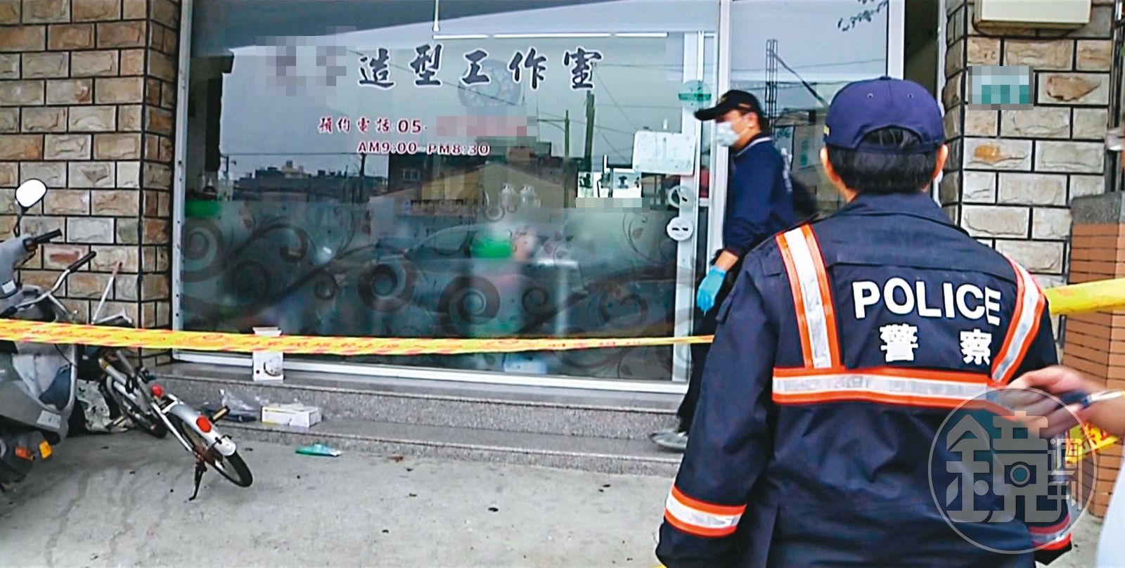 美髮店驚傳命案,警方獲報趕來後拉起封鎖線蒐證。(東森新聞提供)發布時間:2021.05.31 05:58 臺北時間